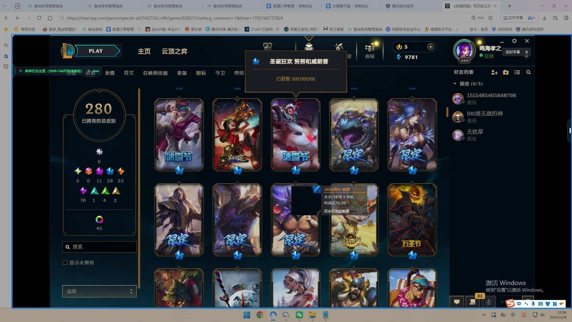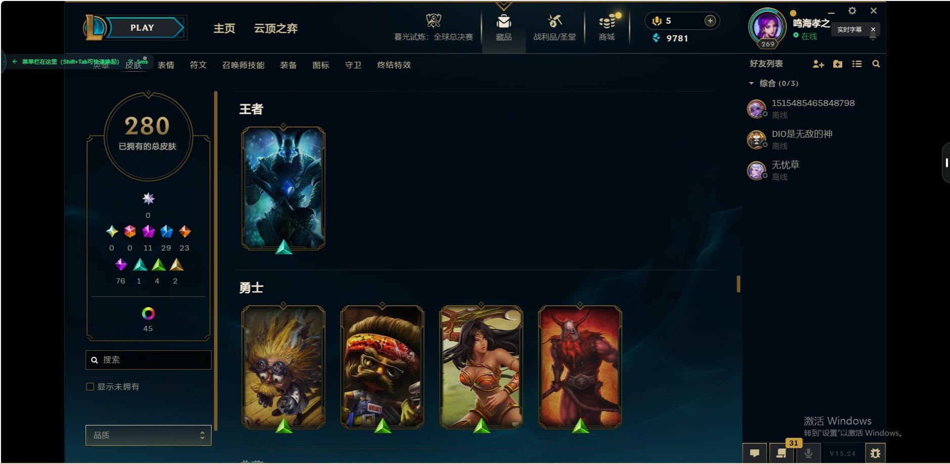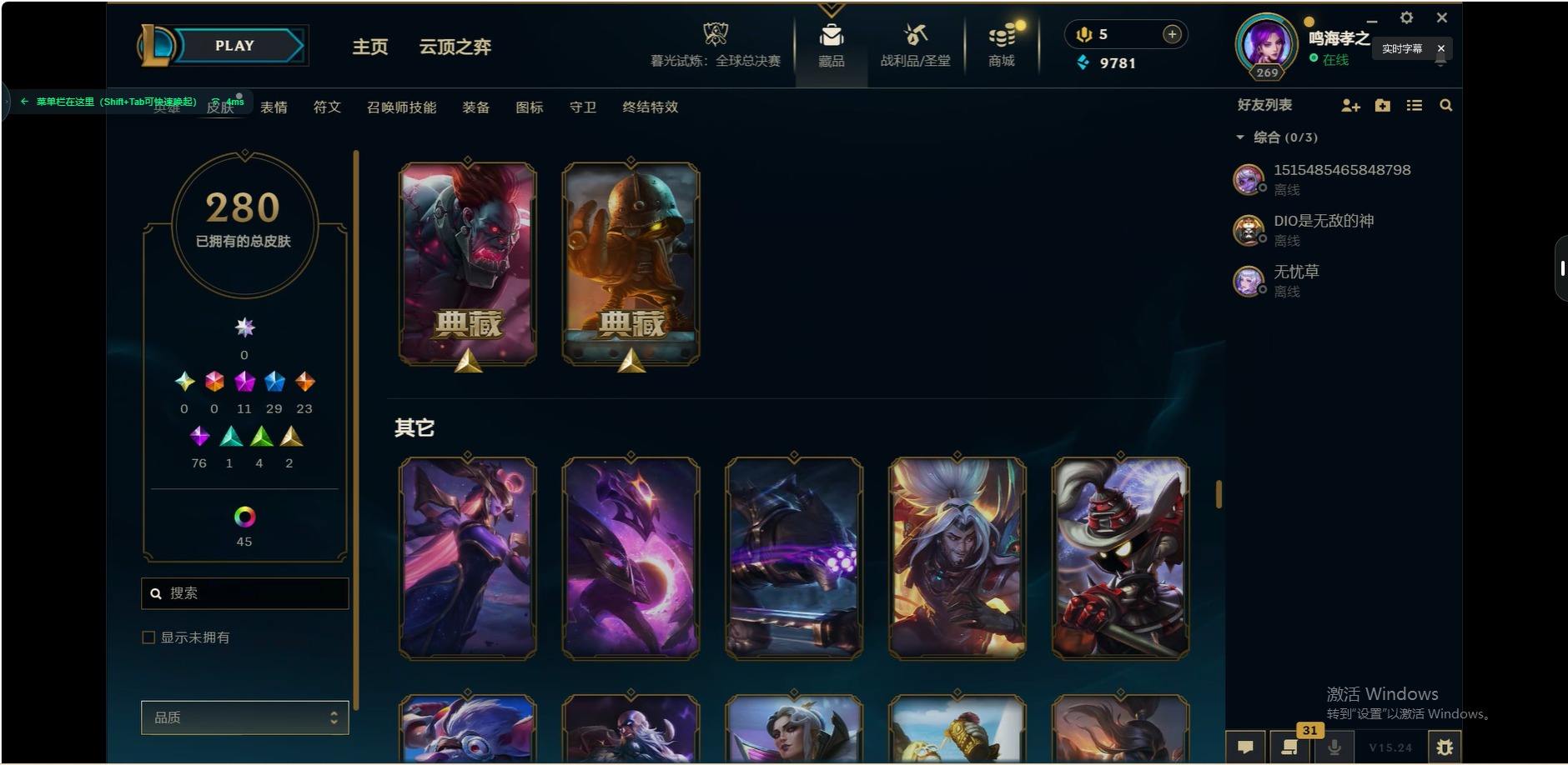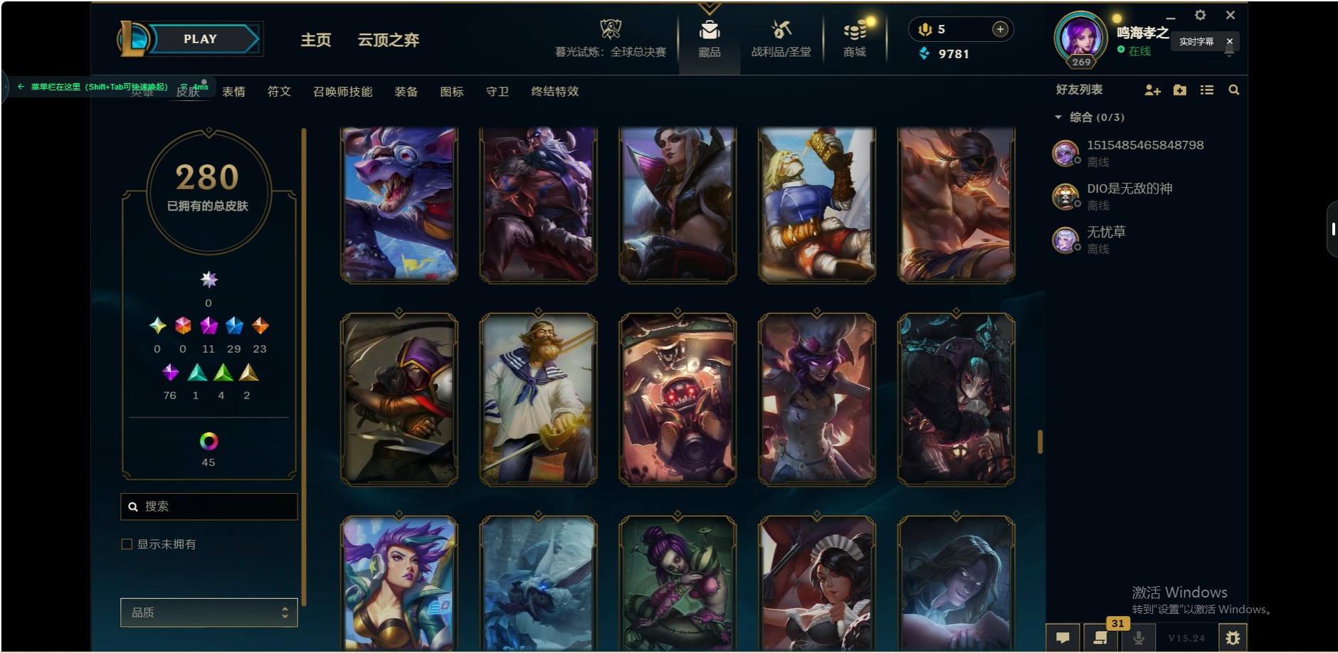 【120302】[14426689]11神话 29限定 23传说 76史诗 280皮肤 51炫彩 169英雄 可二次 可修改实名 【至臻】:至臻 北极星钢影 卡蜜尔,至臻 腥红之月 亚托克斯,至臻 玉剑传说 武剑仙,至臻 黑夜使者 李青,至臻 暗星 墨菲特,至臻 灵魂莲华 提莫,水晶圣骑 艾希 【海克斯】:海克斯 嘉文四世,海克斯 雷克顿 【赛季限定皮】:胜利女神 娑娜,胜利巨口 克格莫,胜利