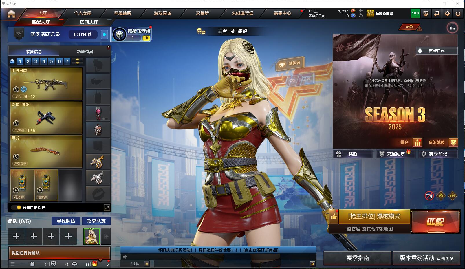 游戏区服:穿越火线 / 南部战区 / 广东一区互 通