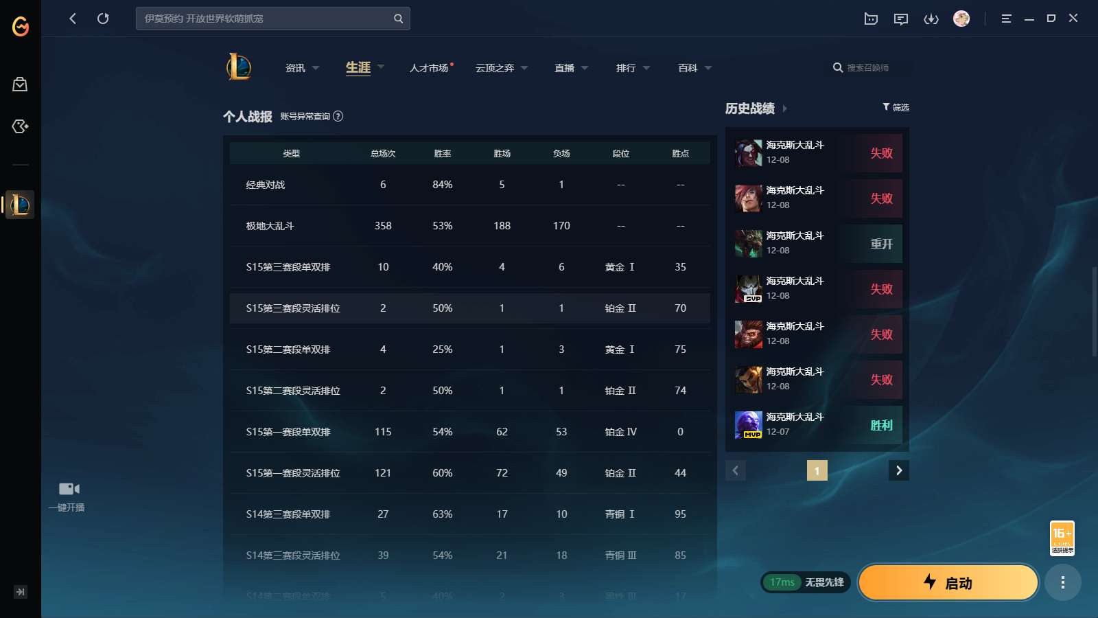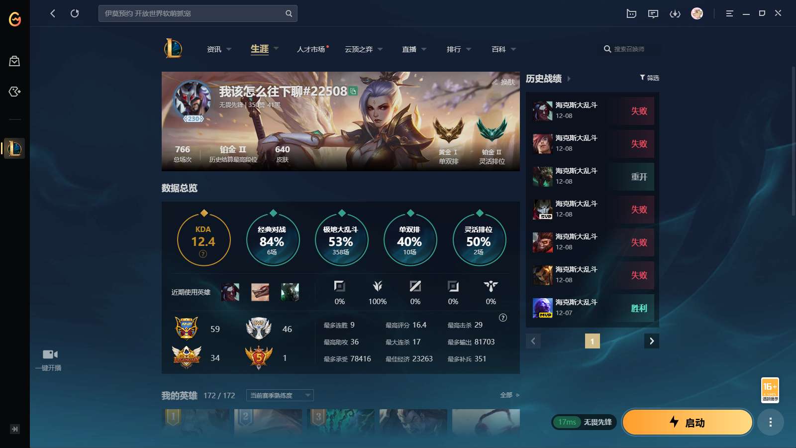 游戏区服:英雄联盟 / 网通 / 无畏先锋