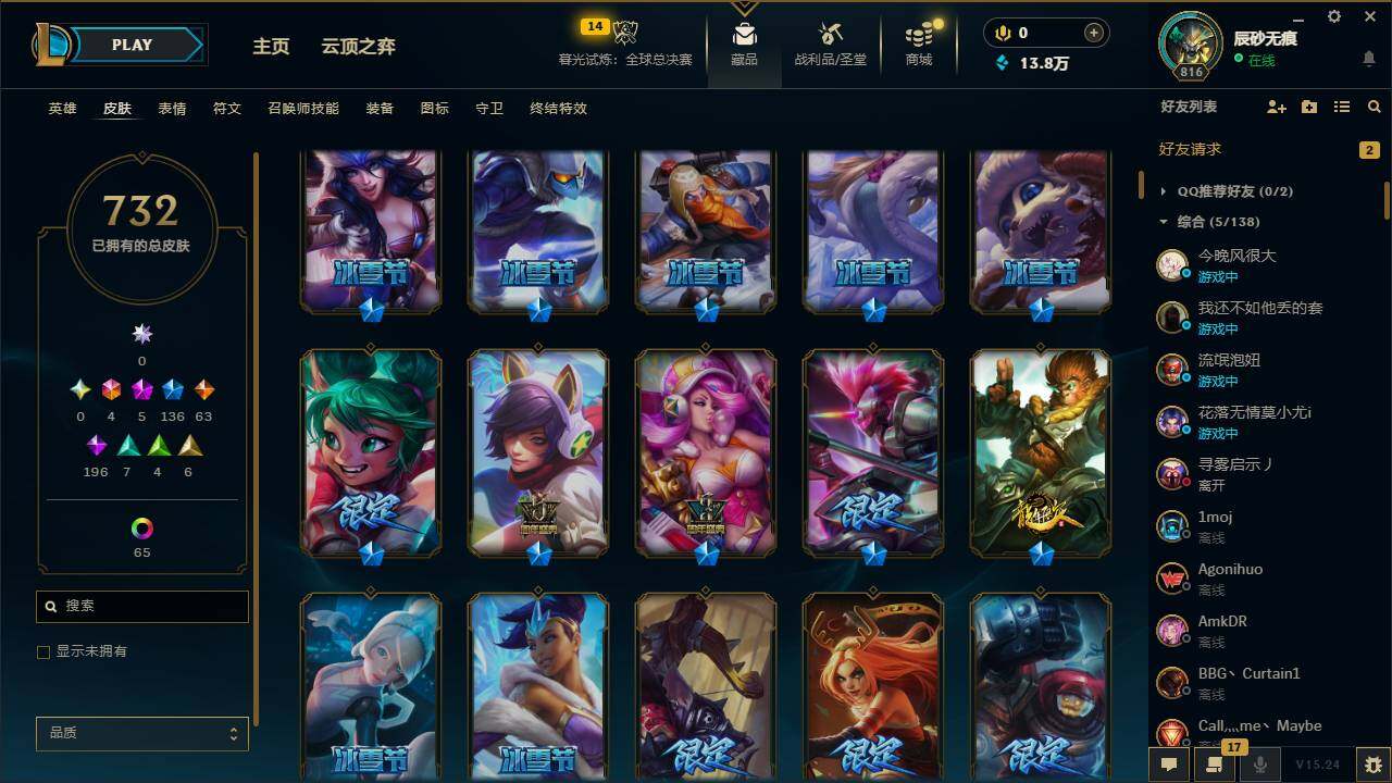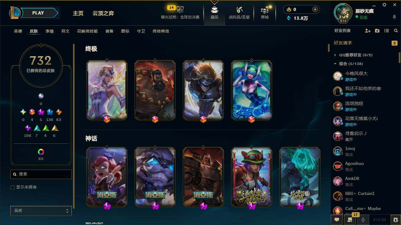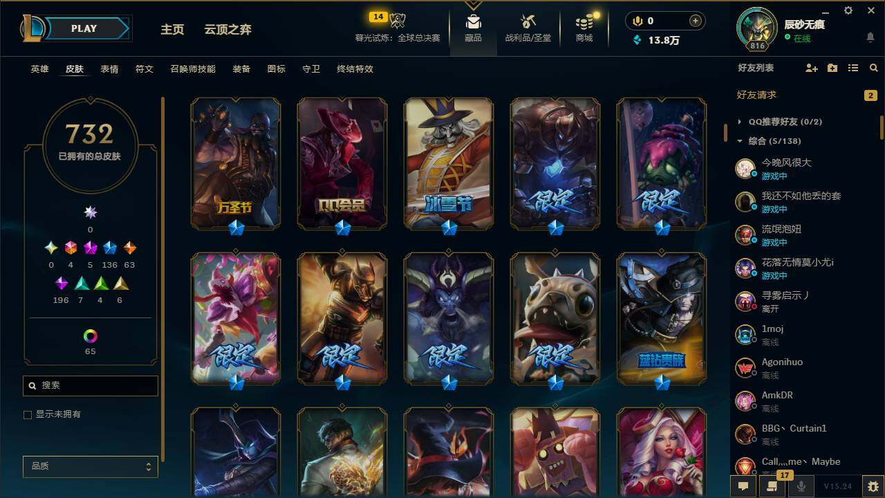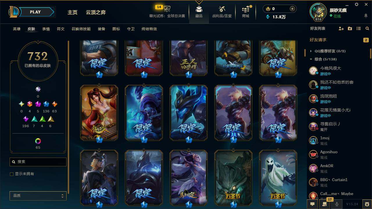 【140294】【LDC1476】172英雄/732皮肤/4终极/5神话/136限定/3臻彩/69炫彩/63传说/196史诗/白银账号等级:816/无畏骑士瑟庄妮赤子初心/雾雨之刃锐雯/龙的传人李青/银龙裁决泰隆/古琴余韵娑娜/定海神针孙悟空/醒狮克格莫/“你看见过我的熊猫吗?”安妮/碧玉之牙卡西奥佩娅/神龙之翼库奇/替父从军花木兰/广寒仙子嫦娥/神龙烈焰金克丝/海克斯科技安妮/海克斯科技吉格斯