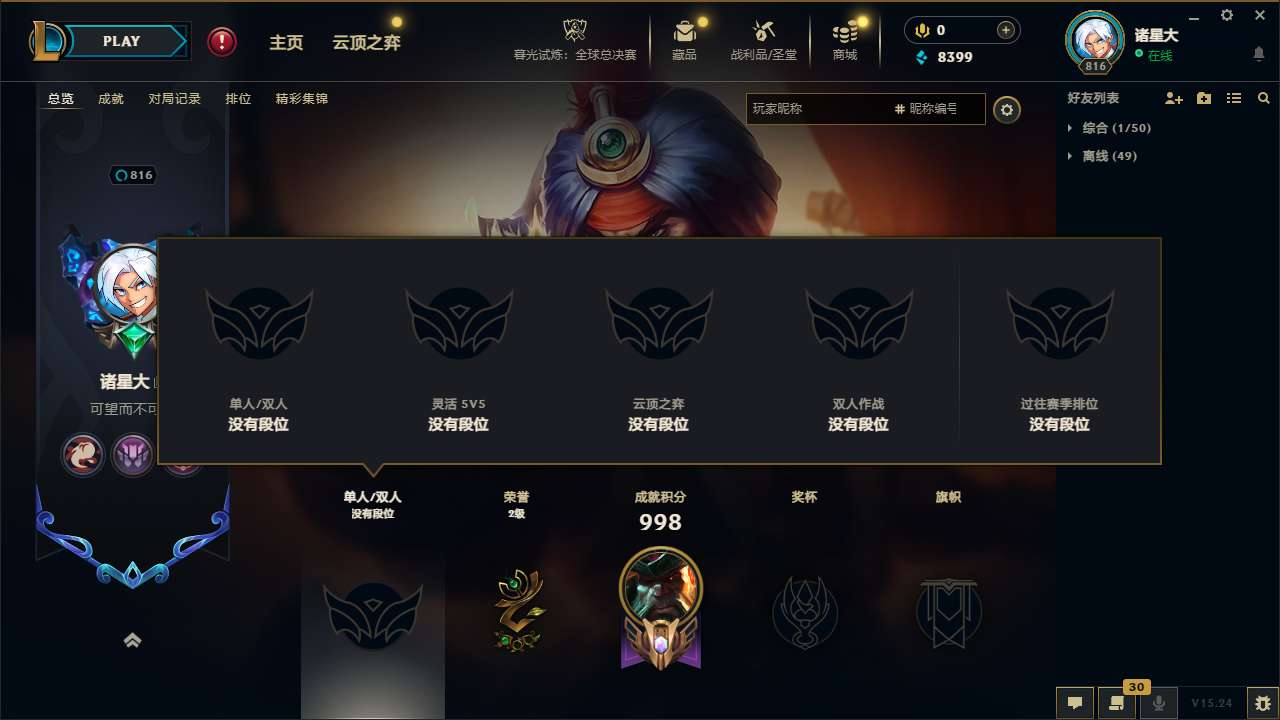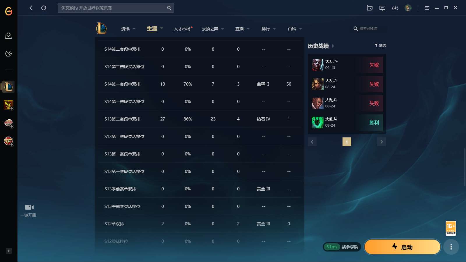 游戏区服:英雄联盟 / 电信 / 战争学院