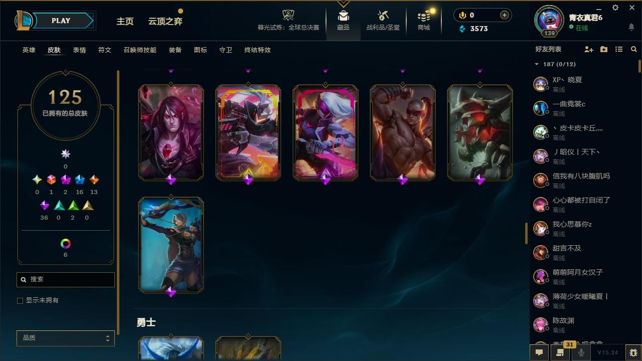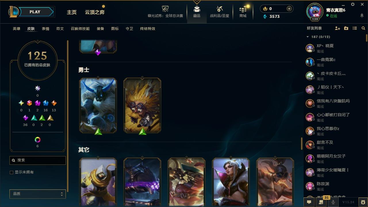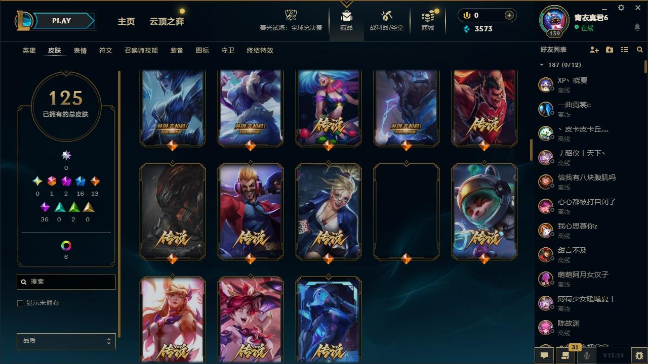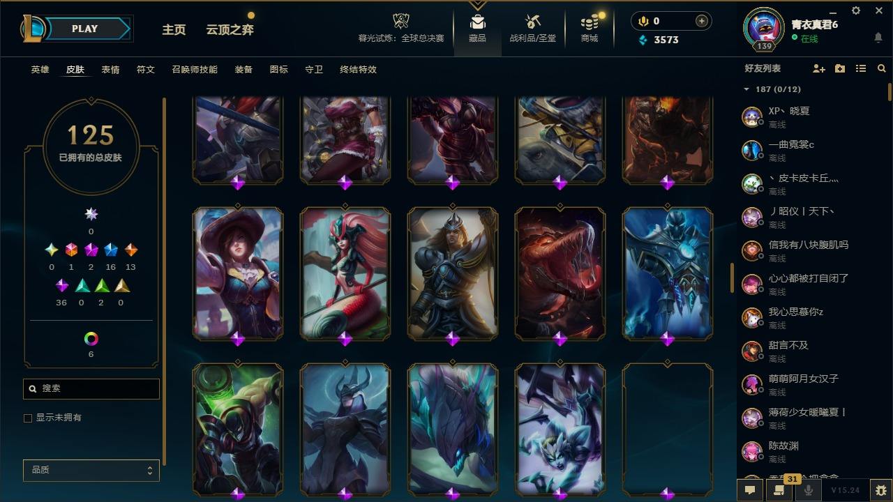 【144334】[14585351]1终极 2神话 16限定 13传说 36史诗 125皮肤 11炫彩 144英雄 可二次 可修改实名 【情人节限定】:觅心猎手 薇恩【赛季限定皮】:胜利女神 奥莉安娜【冠军限定系列】:S4 SSW 锤石【冰雪节限定】:幸福女神 乐芙兰,雪默丁格【万圣节限定】:鬼影森森 茂凯,魅惑女巫 奈德丽,无头骑士 赫卡里姆【年限】:神龙烈焰 金克丝【周年】:10周年 安妮【