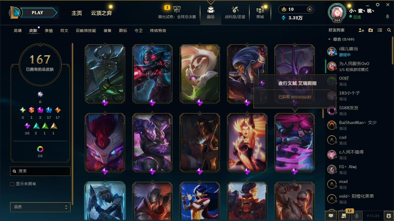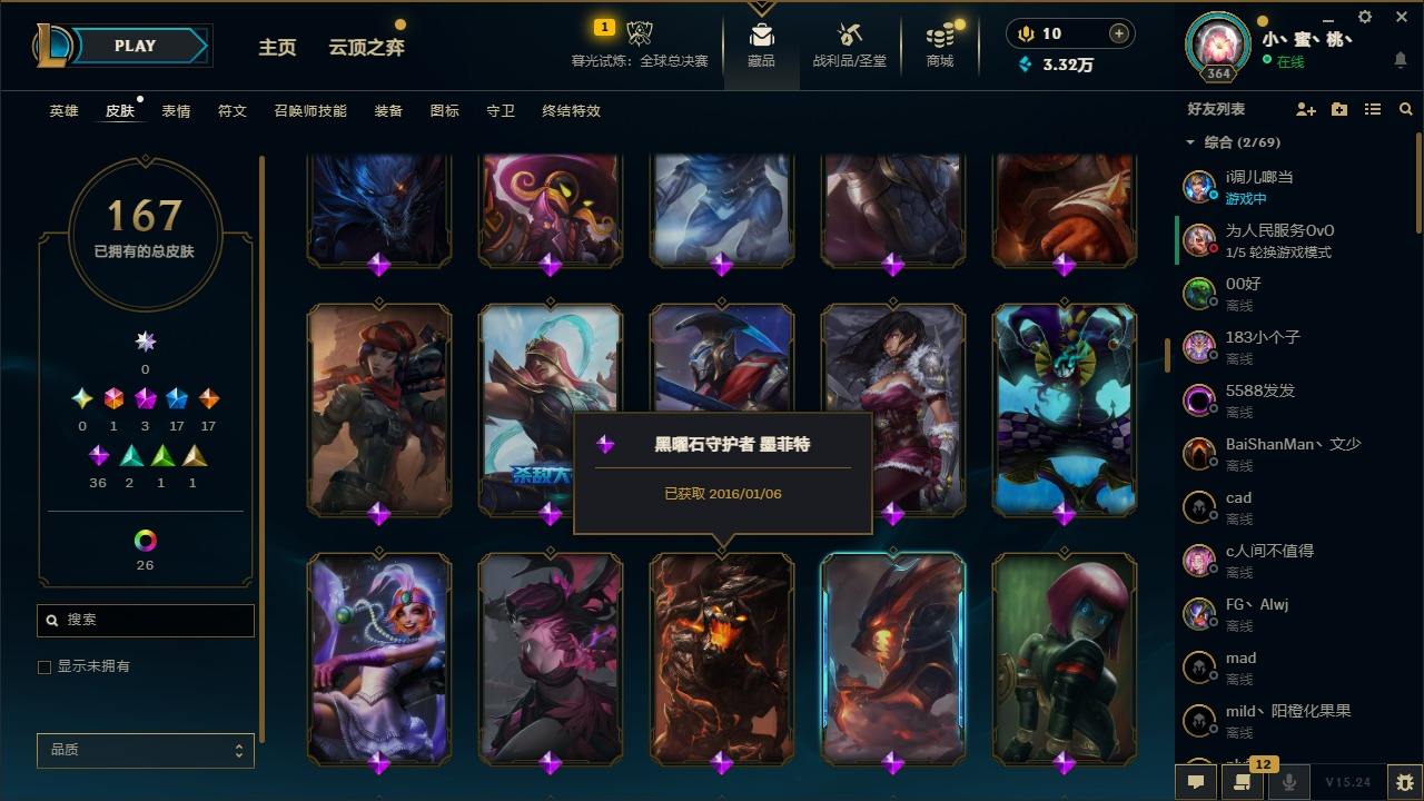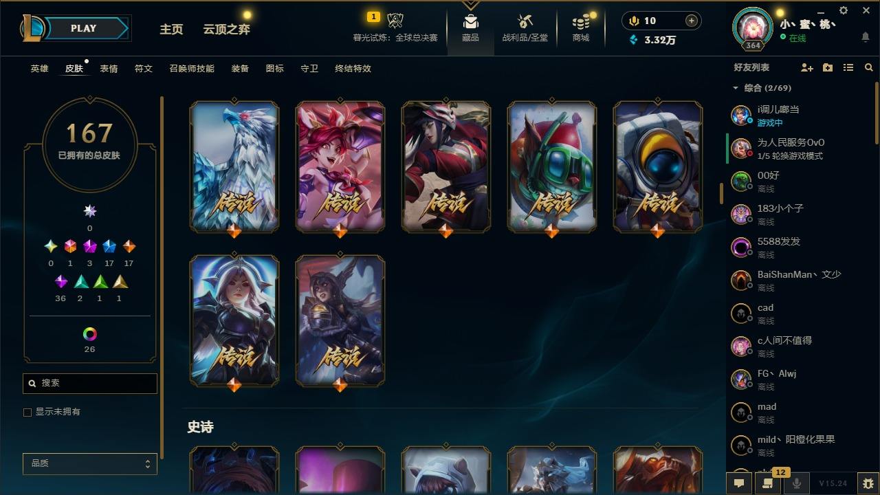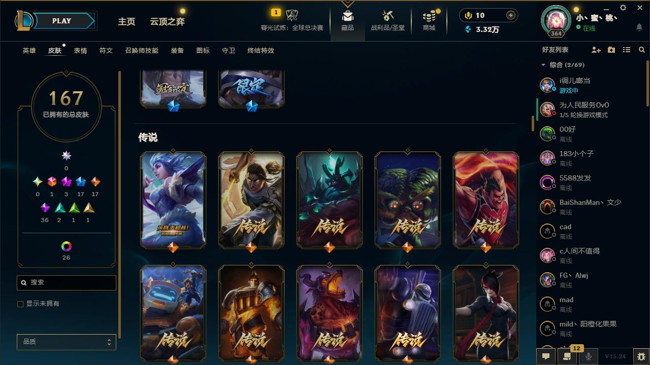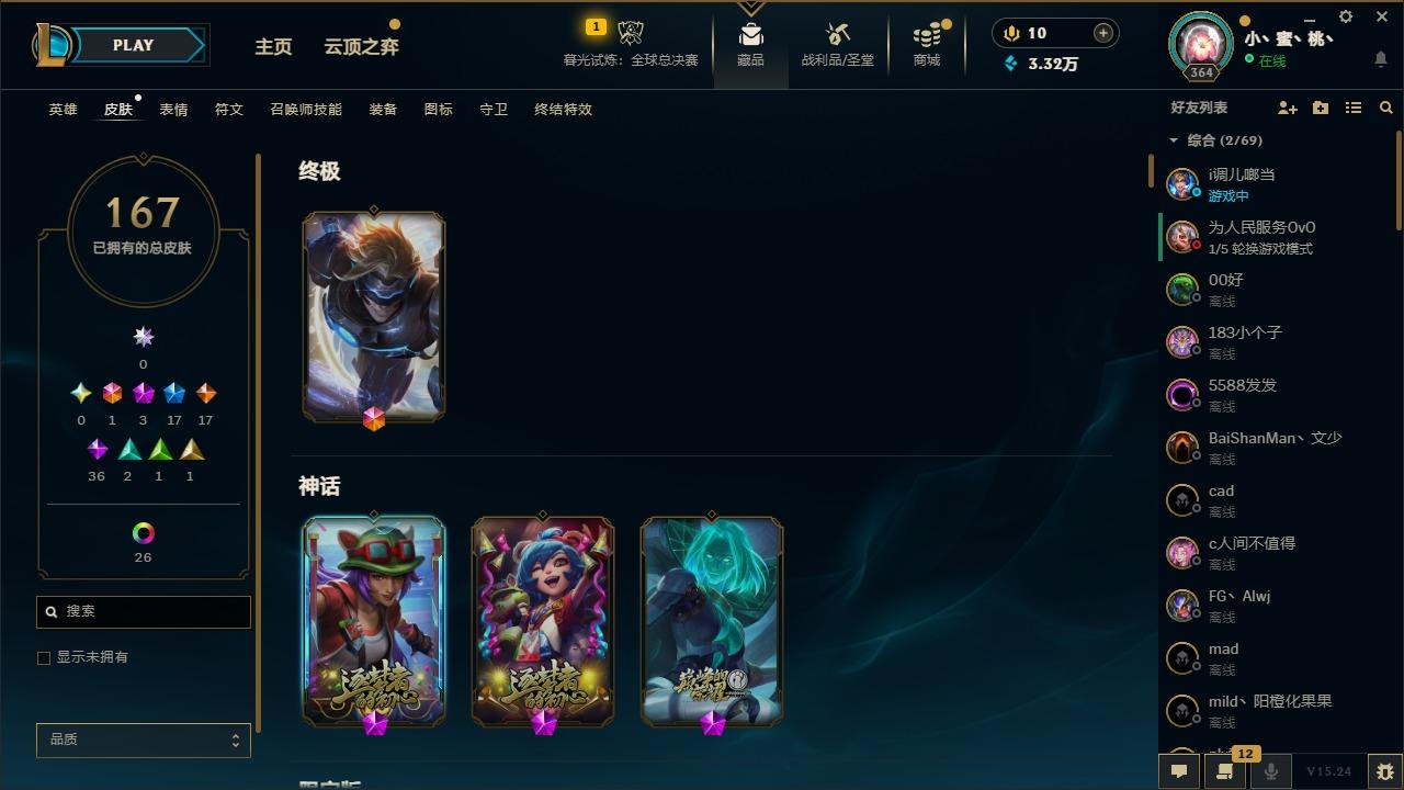 【150640】[14647132]1终极 3神话 17限定 17传说 36史诗 167皮肤 28炫彩 172英雄 可二次 可修改实名 【赛季限定皮】胜利剑圣 易,胜利巨口 克格莫,胜利之王 泰达米尔,胜利凤凰 艾尼维亚,胜利女神 娑娜 【冠军限定系列】S11 EDG 佛耶戈,S4 SSW 雷恩加尔 【冰雪节限定】圣诞驯鹿 克格莫 【泳池派对】泳池派对 辛德拉,泳池派对 吉格斯,泳池派对 李青