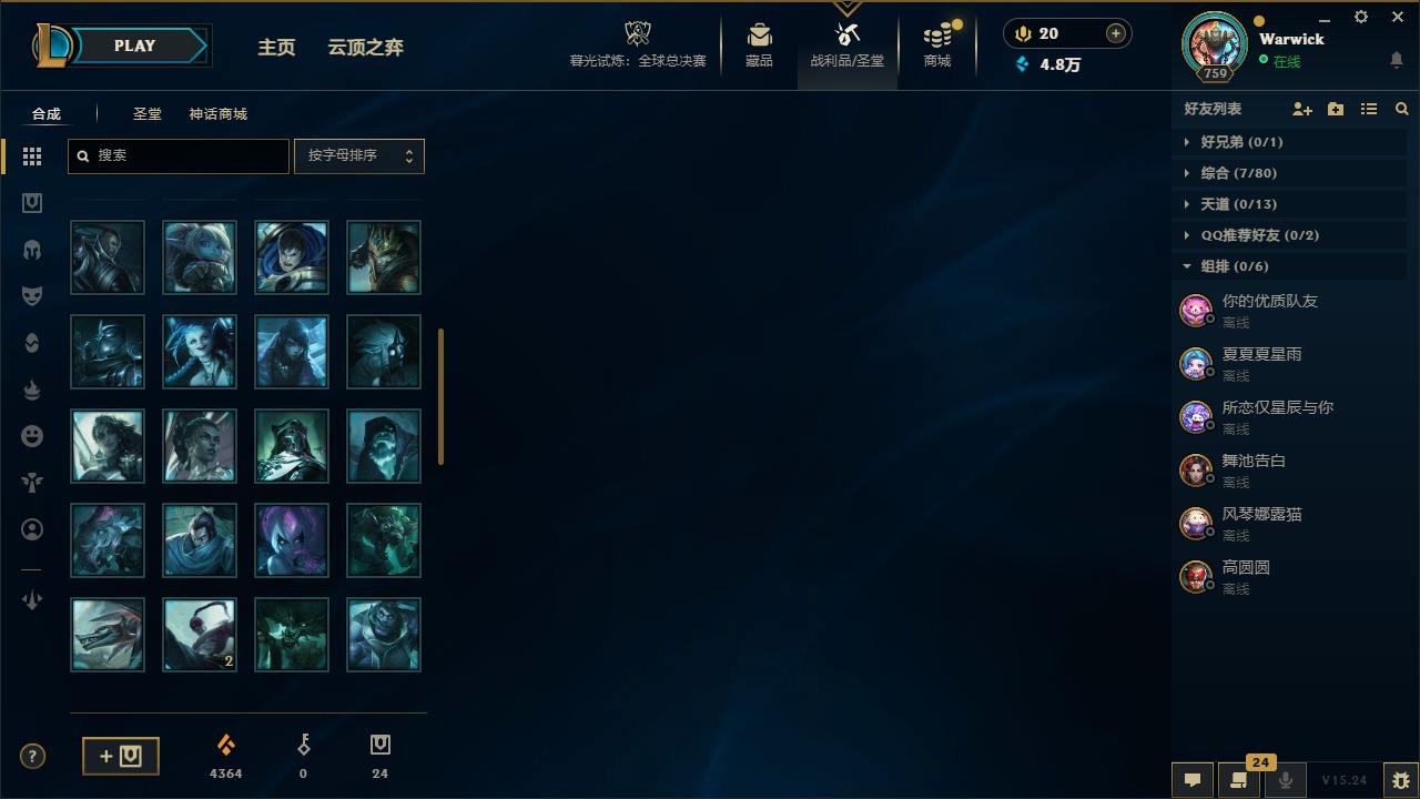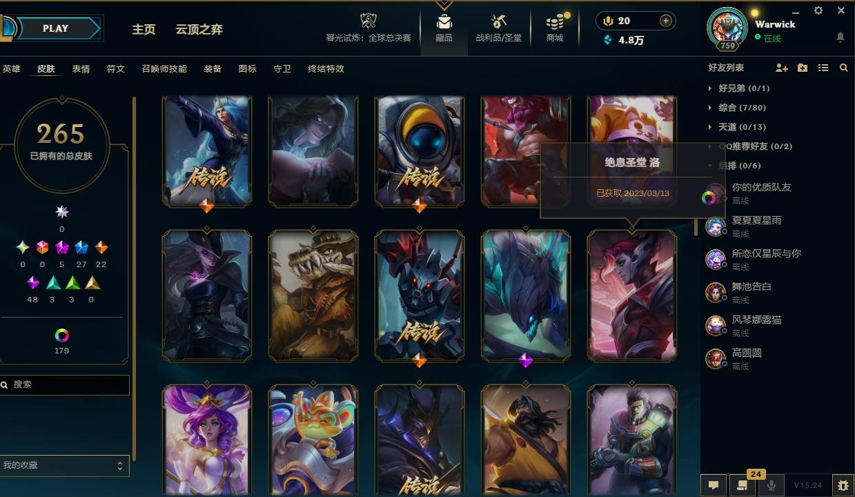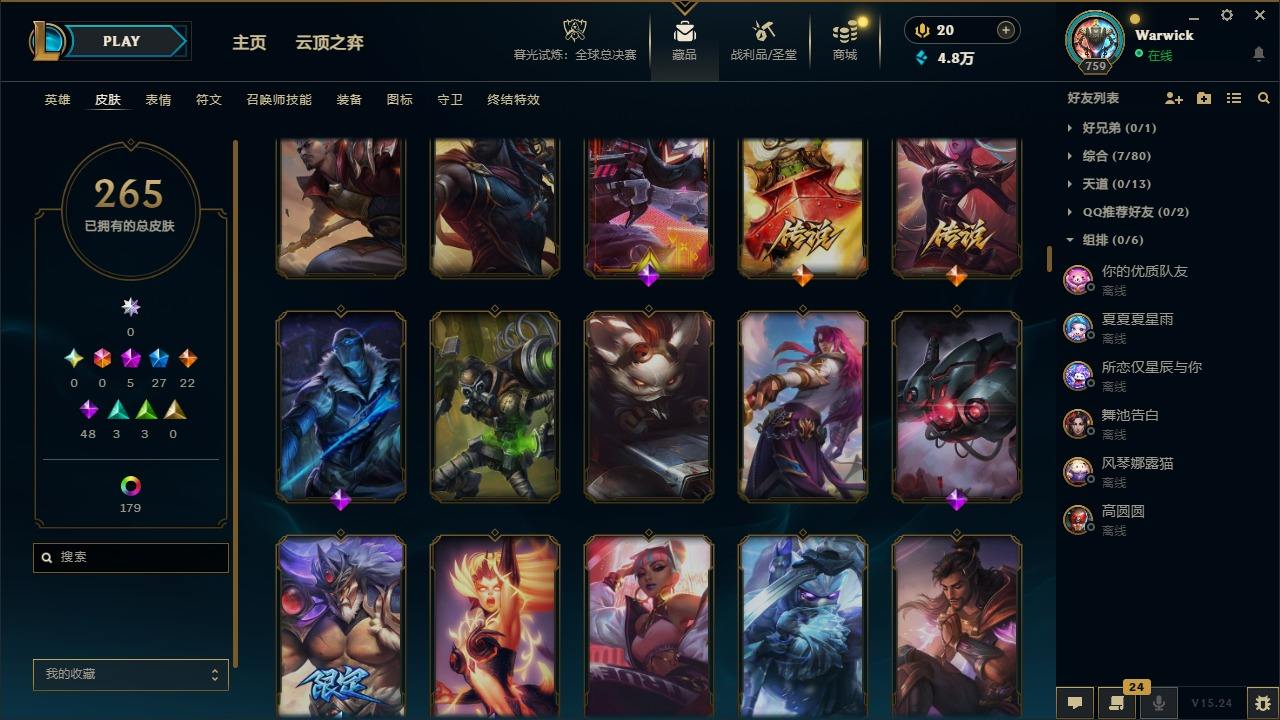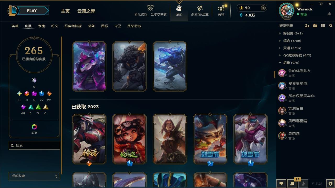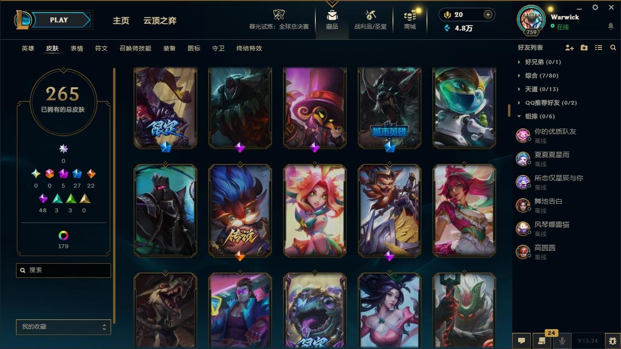 【152154】[14656373]5神话 27限定 22传说 48史诗 265皮肤 194炫彩 可二次 可修改实名 【海克斯】:海克斯 雷克顿【限定】:双城之战2 范德尔 沃里克【赛季限定皮】:胜利凤凰 艾尼维亚,胜利之运 崔斯特,胜利剑圣 易,胜利女神 娑娜,胜利巨口 克格莫,胜利之王 泰达米尔,胜利女神 瑟庄妮【冠军限定系列】:S2 暗杀星 蒙多,S2 暗杀星 努努【冰雪节限定】:魄罗骑士