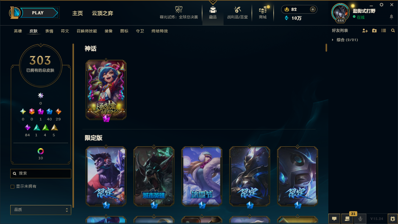 【152293】[14479182]t32117【战争学院】303皮肤 16炫彩 1神话/40限定/29传说/170英雄 账号等级:444【重要皮肤】胜利女神希维尔 胜利巨口克格莫 创星之灵璐璐 龙的传人李青 替父从军花木兰 胜利女神奥莉安娜 胜利枪神格雷福斯 冬季仙境卡尔玛 冰雪女神辛德拉 平安夜女神娑娜 死亡誓约卡特琳娜 灵魂收割者索拉卡 泳池派对格雷福斯 穿星魔锋