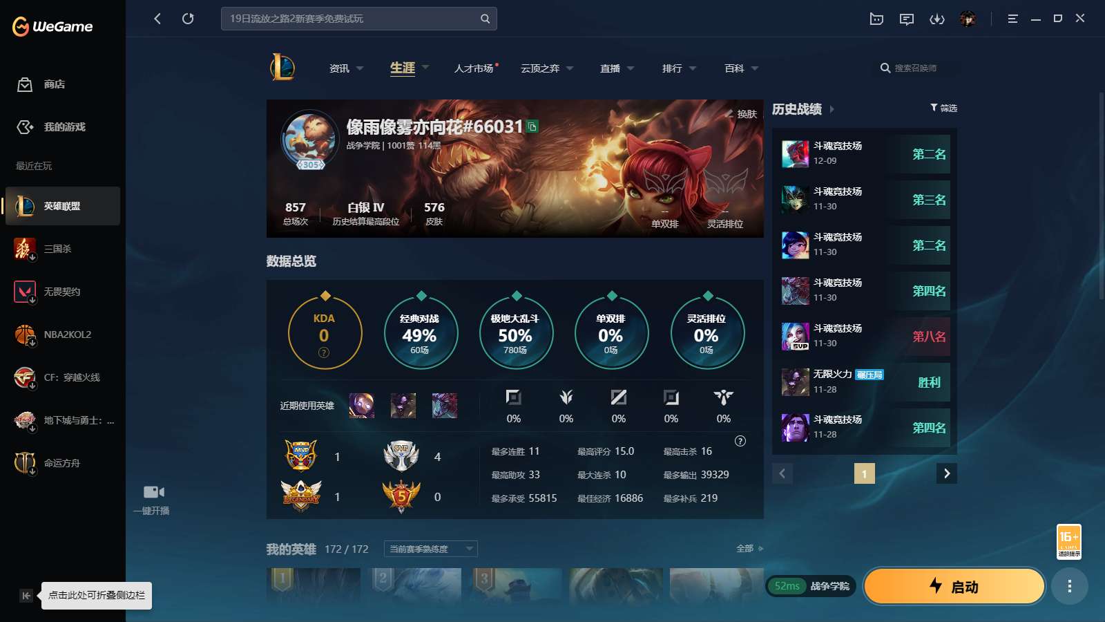 游戏区服:英雄联盟 / 电信 / 战争学院