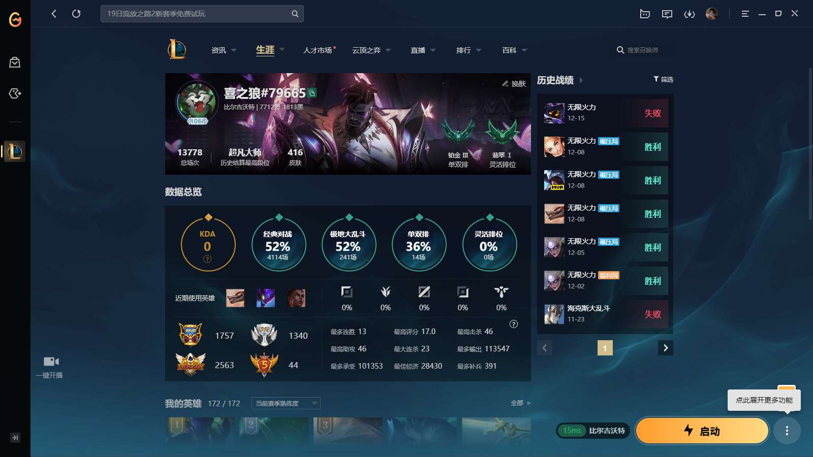 游戏区服:英雄联盟 / 网通 / 比尔吉沃特