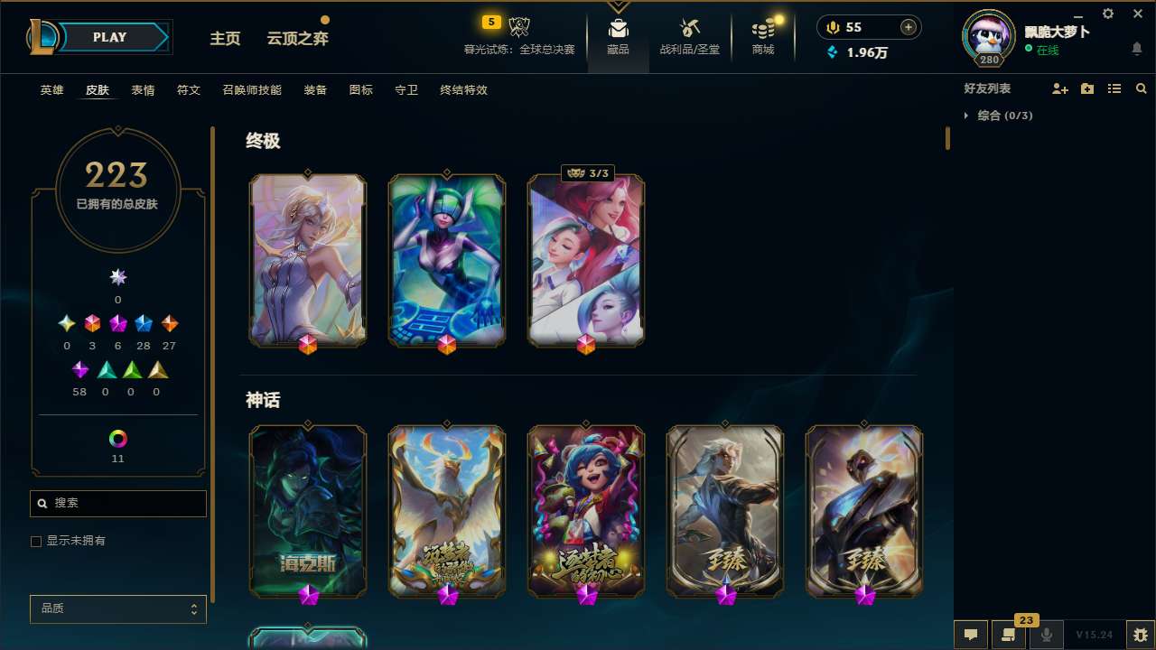 【153614】[14663431]t32446【比尔吉沃特】223皮肤 12炫彩 6神话/28限定/27传说/160英雄 账号等级:280 单双排段位:白银【重要头像】萨勒芬妮超级巨星 萨勒芬妮独立音乐人 我麦是开的么 魔女阿狸 【重要皮肤】源计划阴劫至臻 黑夜使者凯隐至臻 未来战士锤石至臻 摄魂使者薇恩 胜利剑圣易 胜利女神娑娜 古琴余韵娑娜 张辽文远 胜利女神瑟庄妮