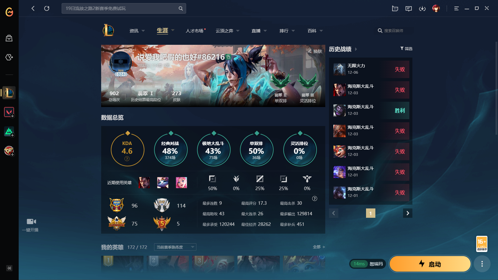 游戏区服:英雄联盟 / 网通 / 恕瑞玛
