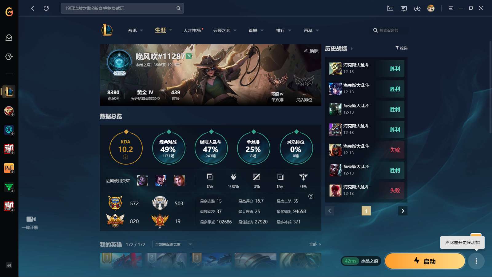 游戏区服:英雄联盟 / 电信 / 水晶之痕