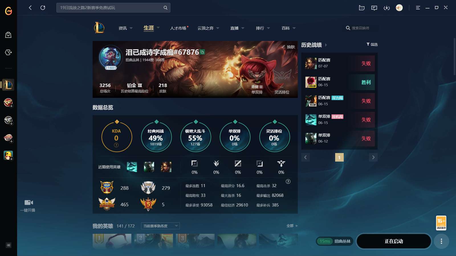 游戏区服:英雄联盟 / 网通 / 扭曲丛林