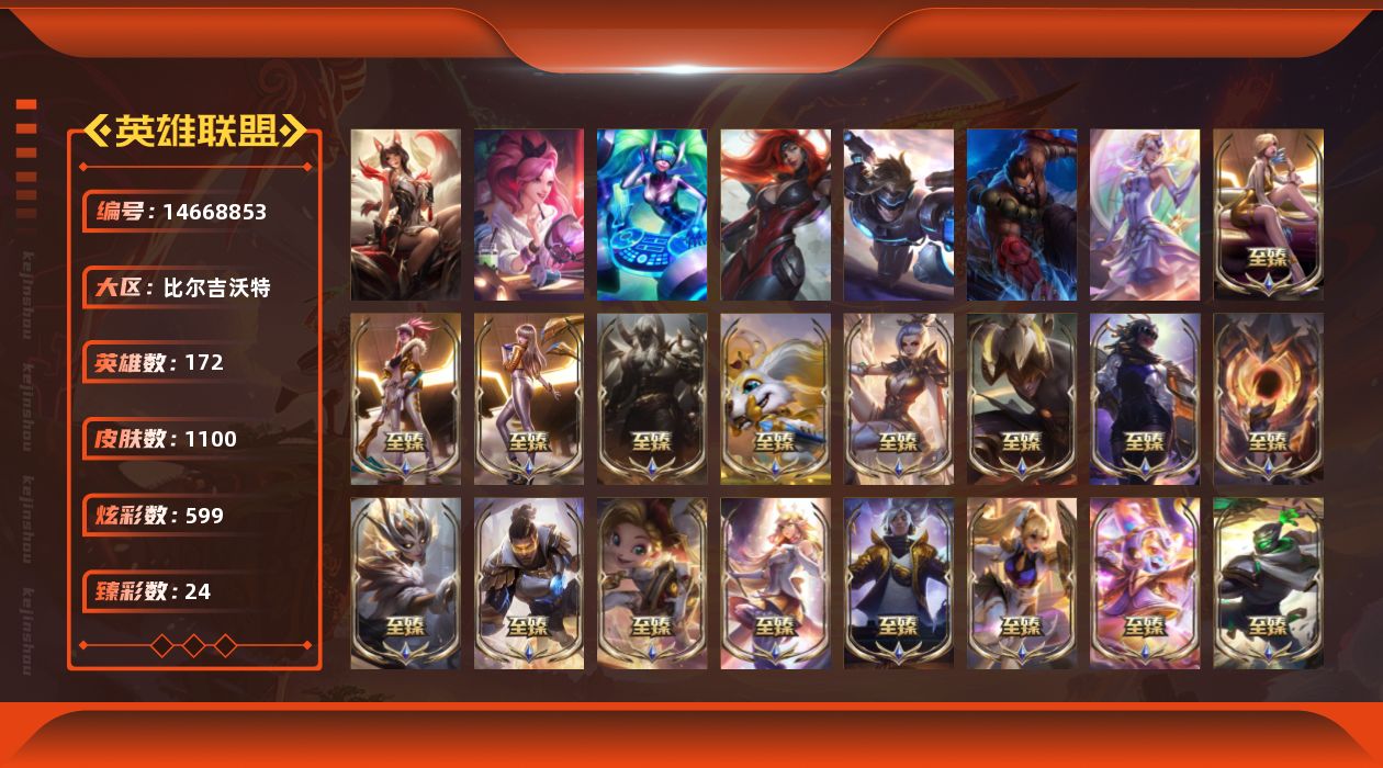【154963】[14668853]t32478 皇冠账号【比尔吉沃特】殿堂传奇阿狸 1100皮肤 599炫彩 24臻彩 55神话/228限定/98传说/172英雄 账号等级:929段位翡翠【重要头像】觅心悠米手办 爱情之歌 觅心游侠卢锡安 觅心之翼奎因 雪花 御星魔矢艾希 萨勒芬妮超级巨星 萨勒芬妮独立音乐人 卡特琳娜的匕首 我麦是开的么 咖啡甜心布偶布罗 咖啡甜心草莓熊