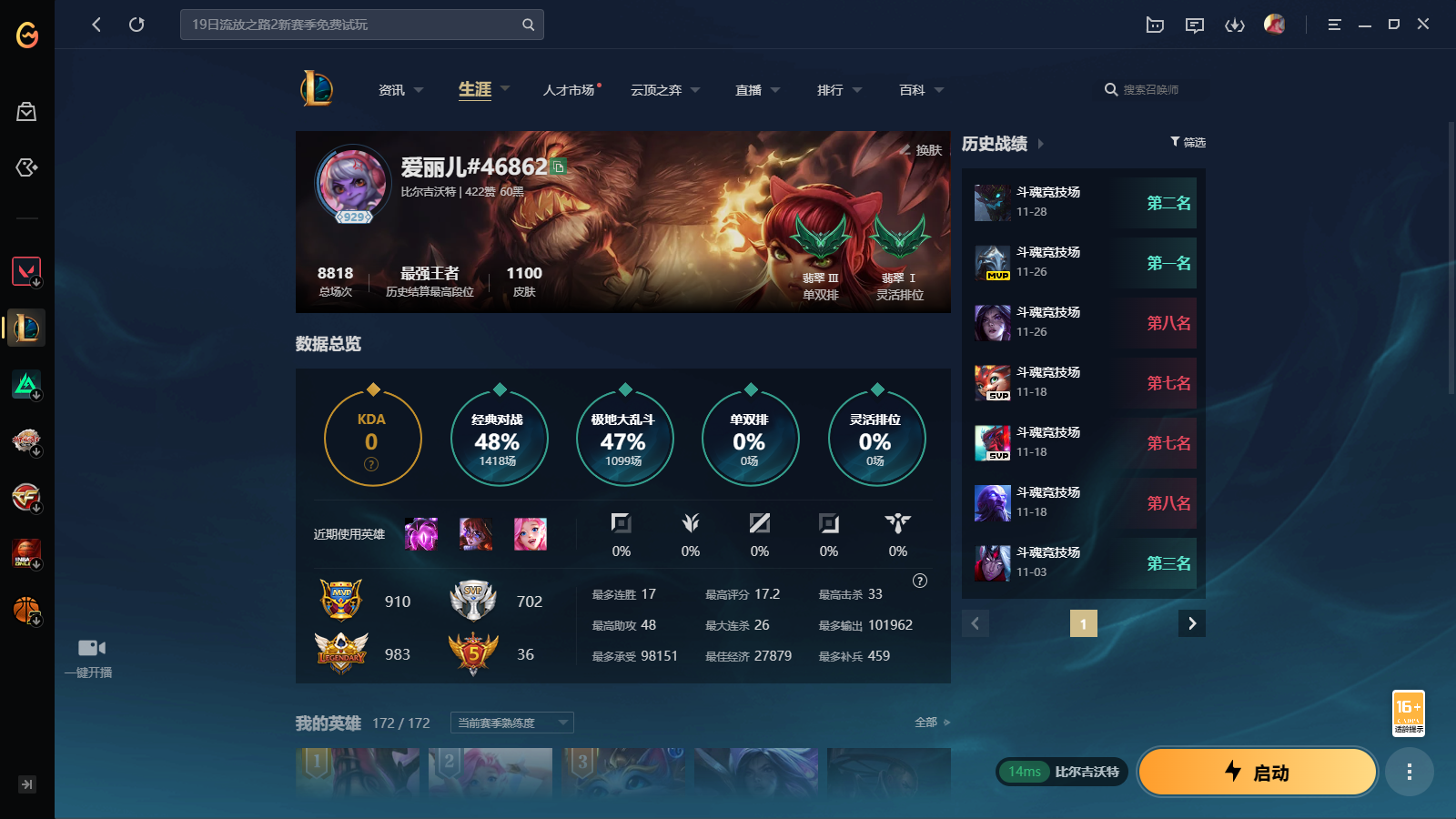 游戏区服:英雄联盟 / 网通 / 比尔吉沃特