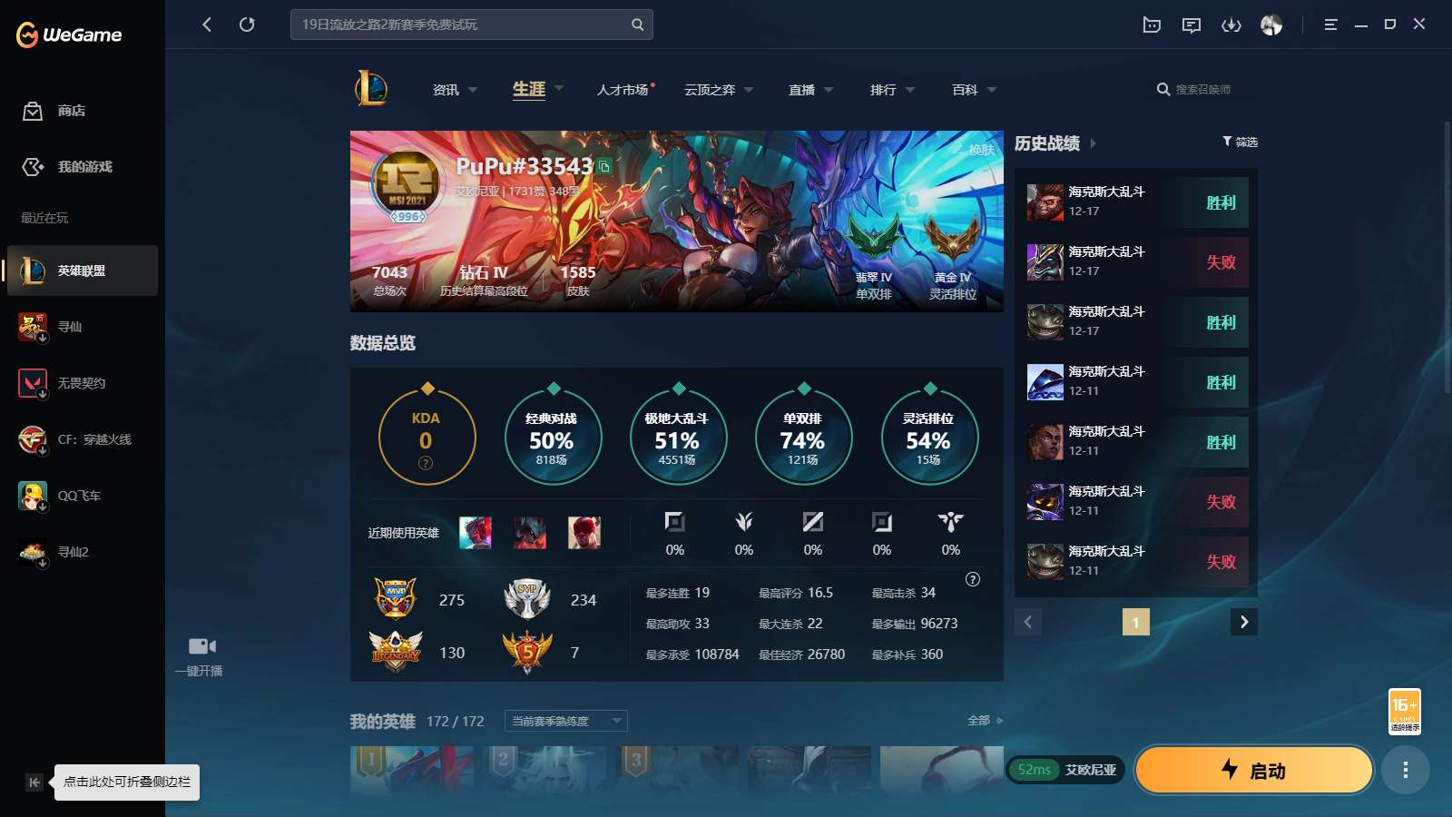 游戏区服:英雄联盟 / 电信 / 艾欧尼亚