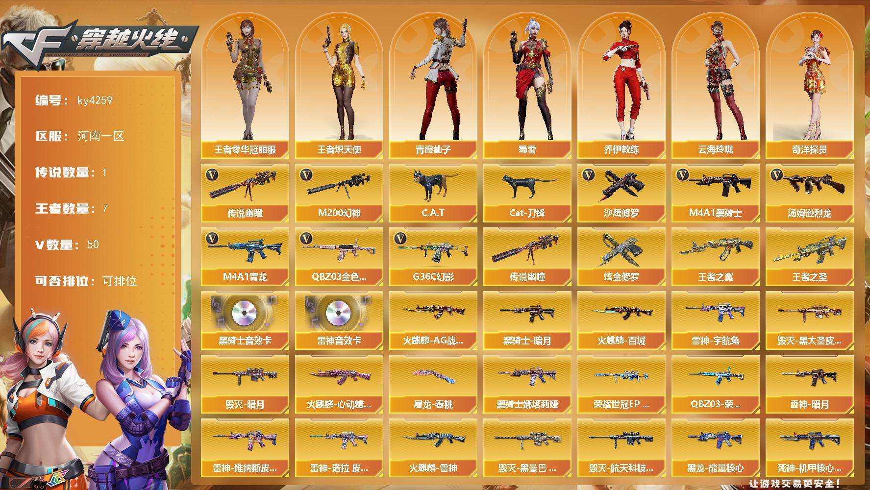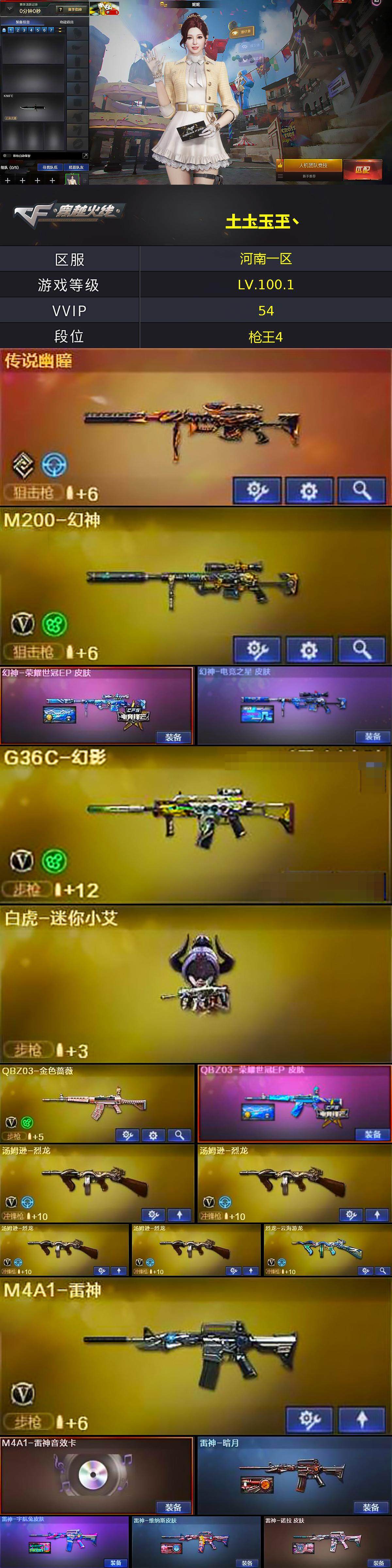 【158577】【158577】河南一区-50V-7王者-1炫金【传说武器】:传说幽瞳【热门武器】:传说幽瞳,G36C-幻影,QBZ03-金色蔷薇,M4A1-