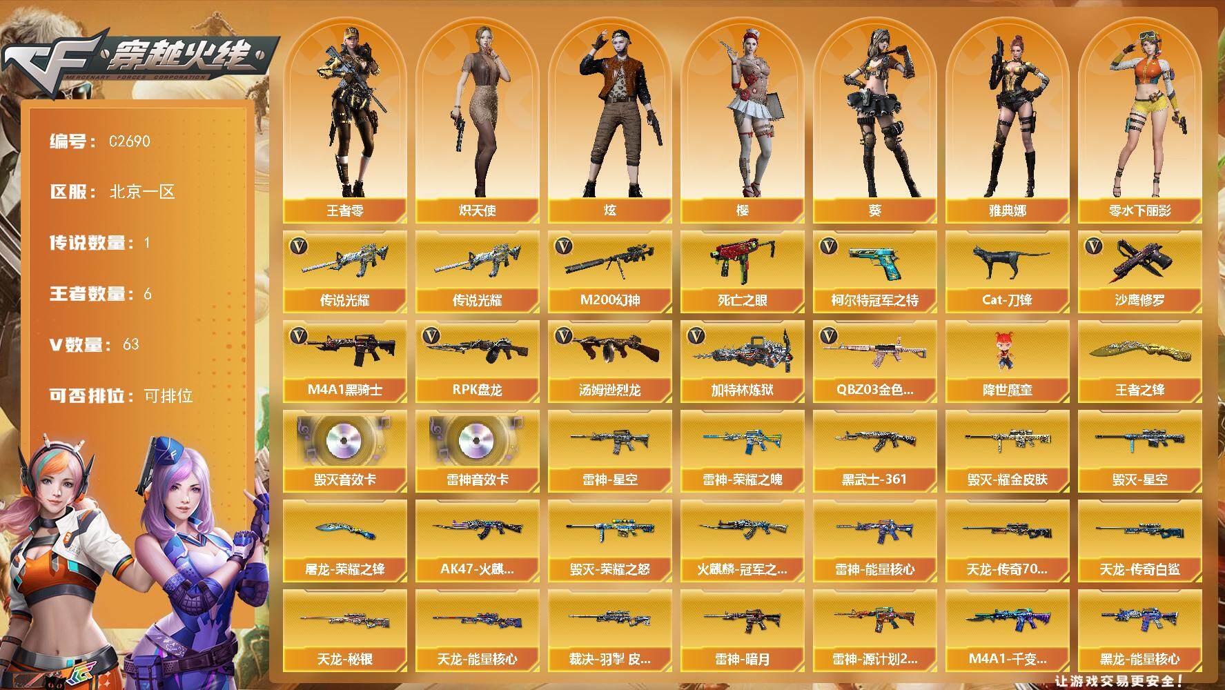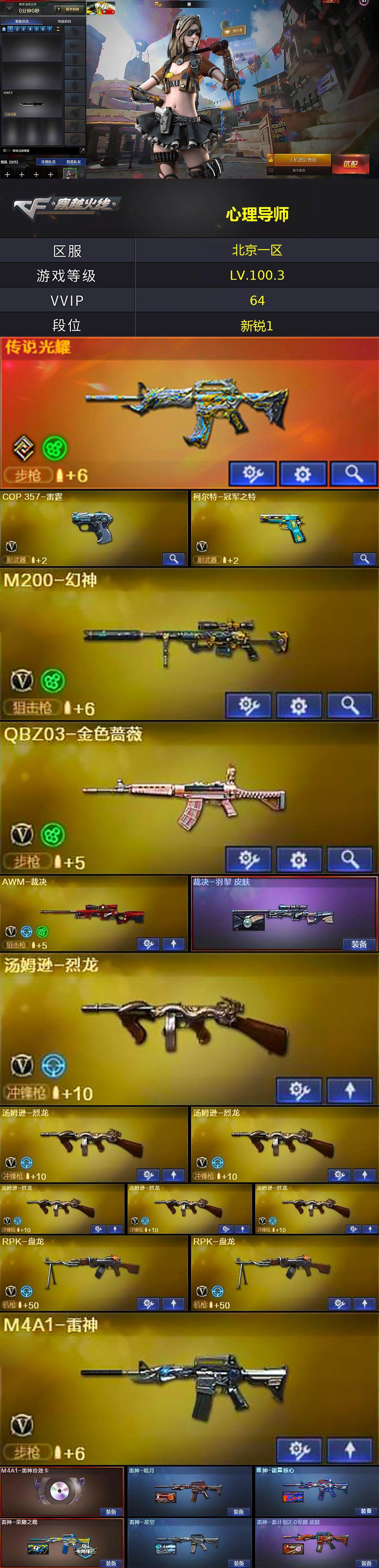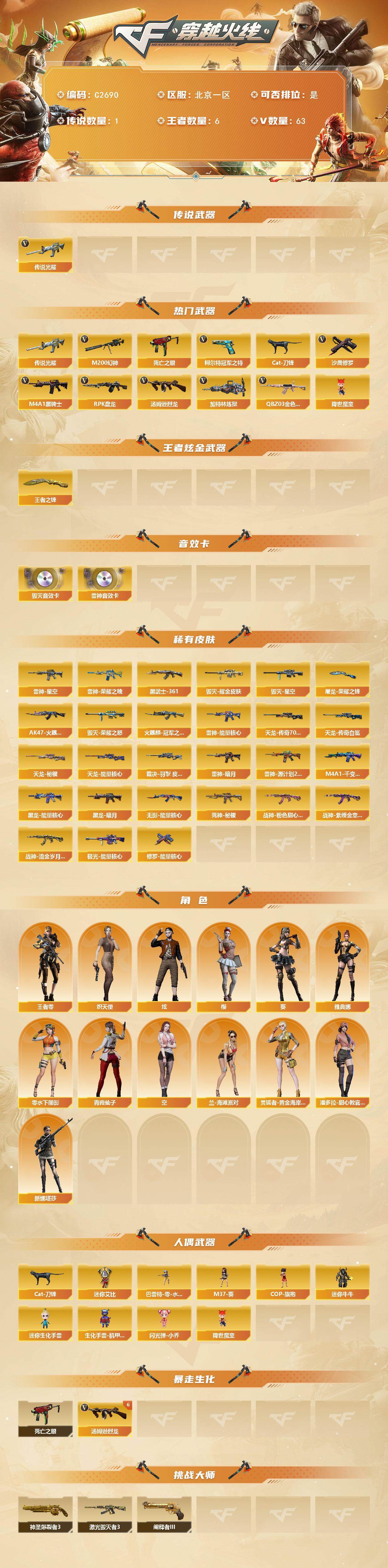 【158737】【158737】[14694438]北京一区-63V-6王者-0炫金【传说武器】:传说光耀【热门武器】:传说光耀,QBZ03-金色蔷薇,M20