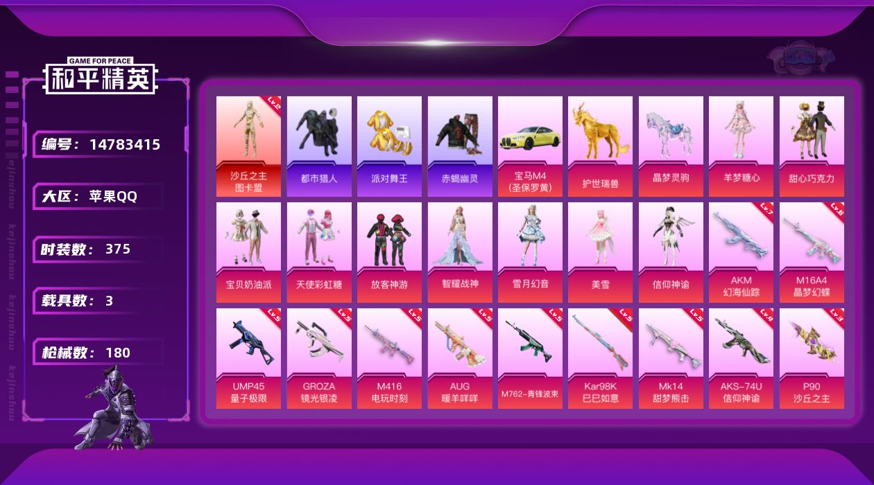 【166514】【不可二次】【苹果QQ】龟仙人 红熊茄茄 M762-青锋波束 漫步者 P90-沙丘之主 都市猎人 甜心巧克力 龙翔九天飞行器 赤蝎幽灵 M416-电玩时刻 沙丘之主-图卡盟 放客神游 UMP45-量子极限 天使彩虹糖 宝贝奶油派 派对舞王