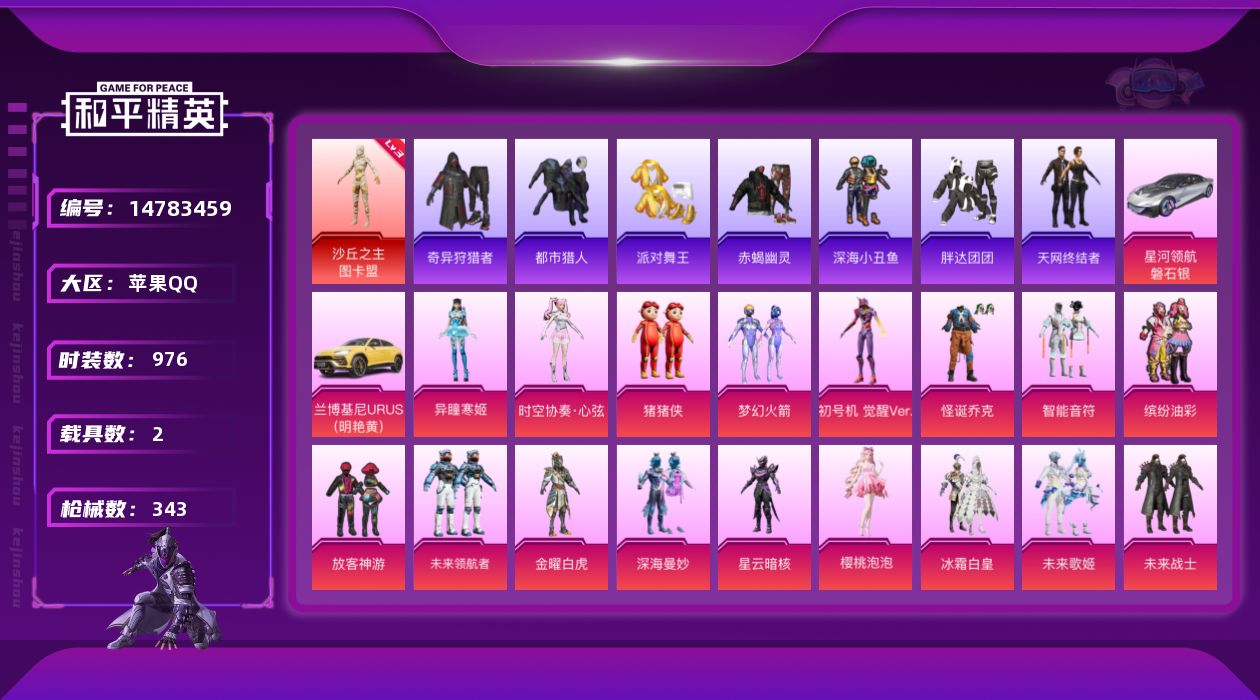 【166522】【可二次】【苹果QQ】滑板小狐 龟仙人 水银刺客 金曜白虎 漫步者 都市猎人 M762-奇异狩猎者 沙丘之主-图卡盟 SCAR-L-彩装战姬 星河领航(磐石银) UMP45-量子极限 缤纷油彩 深海小丑鱼 夜幕颂歌飞行器 智能音符 镜光幻境飞行翼 纯白誓言 AKM-奇异狩猎者 怪诞乔克 迅捷狂鲨 狂沙舞者 龙翔九天飞行器 兰博SUV黄色 M416-全功率超战 AKM-梦之光华 金