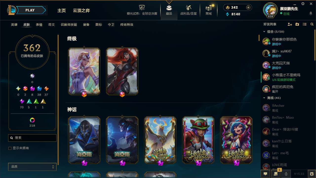 【168342】[14793177]t30866【扭曲丛林】 362皮肤 239炫彩 10臻彩 8神话/38限定/37传说/172英雄 账号等级:838 单双排段位:铂金 【重要头像】爱意绵绵 心型钥匙 觅心之翼奎因 冬境仙灵妮蔻 大家伙 KDA萨勒芬妮 太空律动拉克丝 可爱悠米 可爱安妮 披萨鸡 此志无双羽饰骑士 不错哦 圣诞捣蛋鬼金克丝 【重要皮肤】凯旋将军德莱厄斯至臻 狼神英灵斯维因至臻