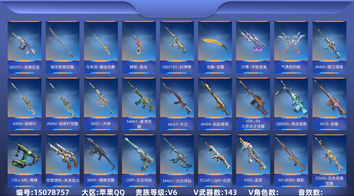 【214673】V6 3王者武器 143英雄武器 可二次 可修改实名 【v武器】:气手枪-血月,M14EBR-拂影,G3A3-五色琉璃觉醒,QBZ03-玉面羞花,SCAR-印刷术,沙鹰-神兵修罗,QSZ92-华夏传说,M4A1-猎神,SCAR-探星者,PP19野牛-造纸术,打击者-天神,KSG-孟获,AN94-赳赳秦师,VSK-94-九黎兵主觉醒,QBB95-再战涿鹿,M16-恶魔,SCAR L