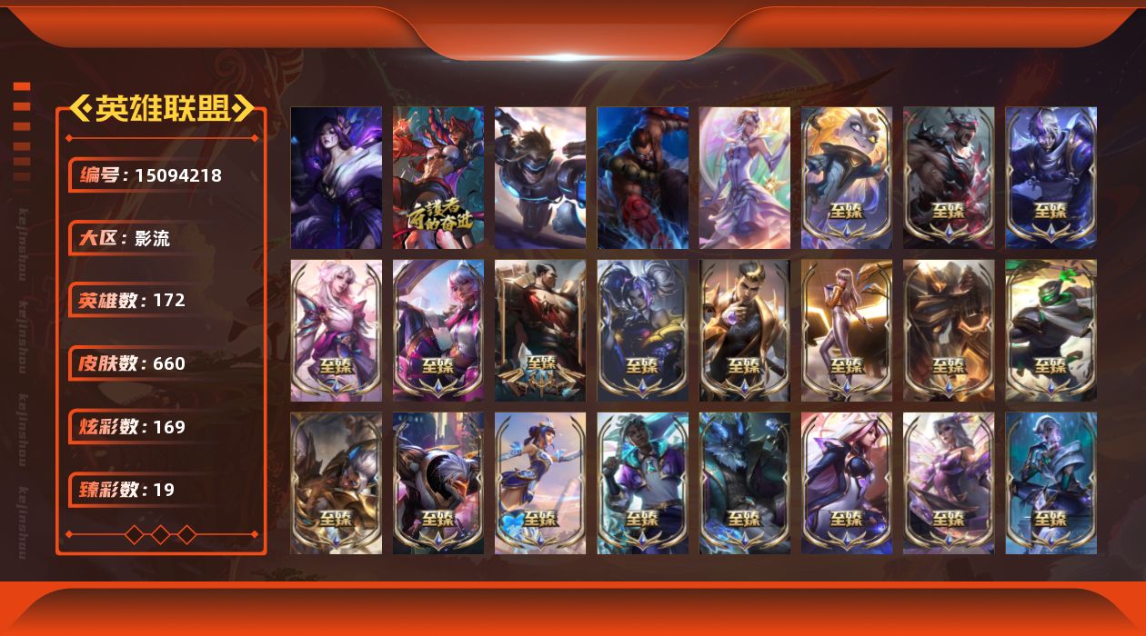 【217981】[15094218]t33323 皇冠账号【影流】灵魂莲华莫甘娜 660皮肤 169炫彩 19臻彩 33神话/111限定/67传说/172英雄 账号等级:523 单双排段位:白银【重要头像】星守阿狸 我麦是开的么 小启 星守金克丝炫彩 披萨鸡 【重要皮肤】灵魂莲华莫甘娜 机神玄武盖伦至臻 永恒星灵佐伊至臻 T1塞拉斯至臻 暗裔英雄嘉文四世至臻 灵魂莲华劫至臻