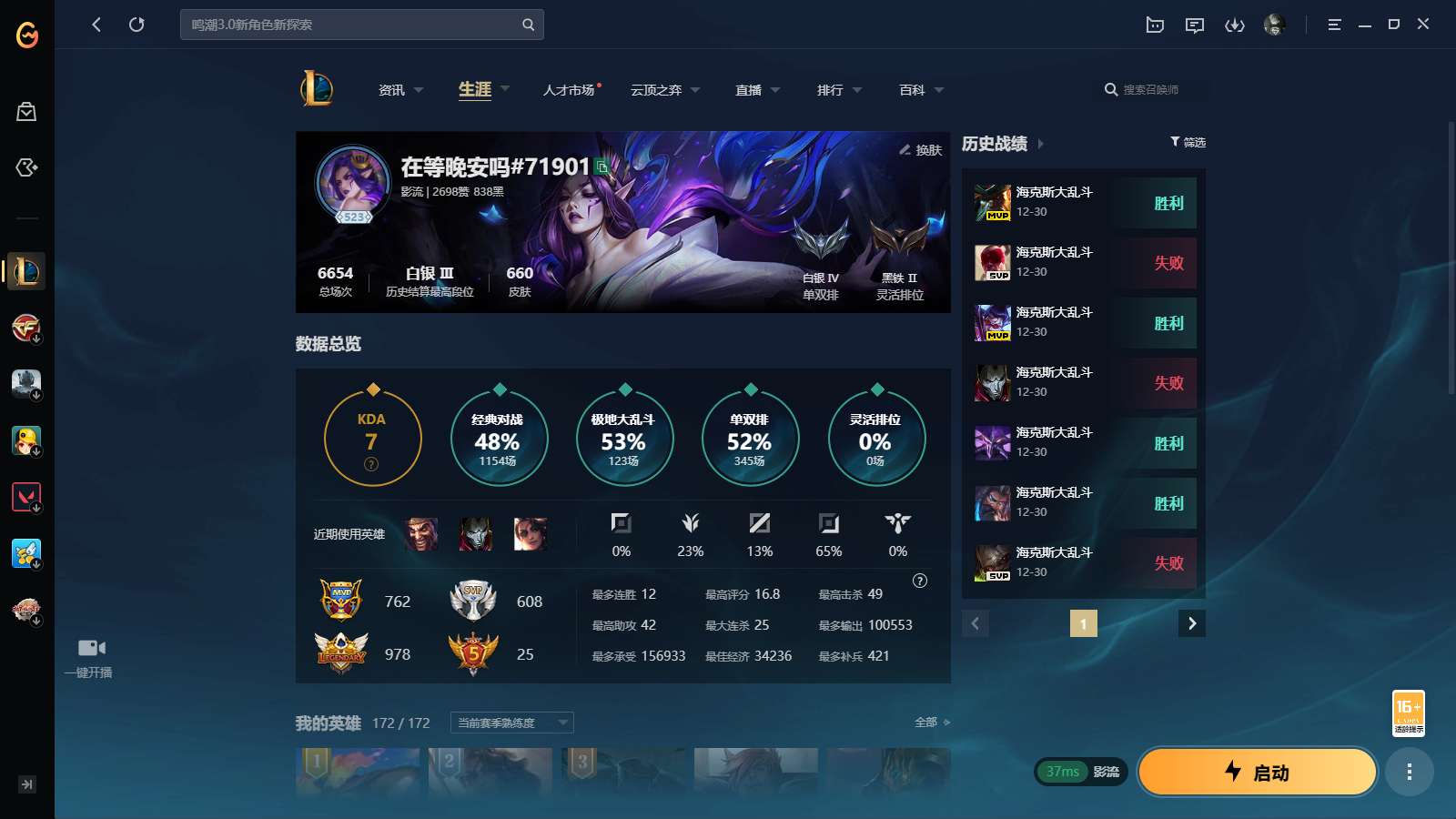 游戏区服:英雄联盟 / 电信 / 影流