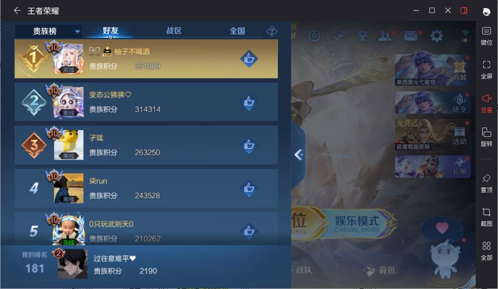 游戏区服:王者荣耀 / 安卓系统 / QQ账号