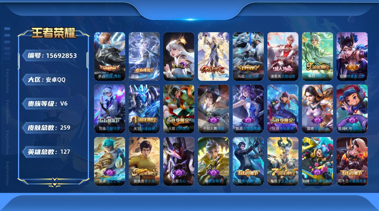 游戏区服:王者荣耀 / 安卓系统 / QQ账号