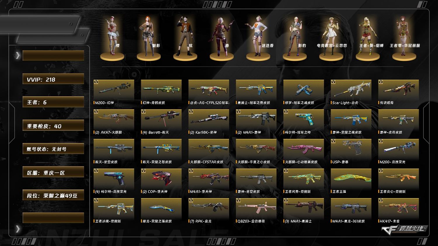 【359643】M8034/西部/重庆一区/可排位/217v/传说暗裔/6盘龙/【幻神三件套/幻神/幻神青鹤/幻神音效卡/幻神竞星跃动音效卡/】/【M200竞技荣光套装/M200竞技荣光/柯尔特竞技荣光/*4/擎天竞技荣光】/星神/*2/星神冠军之星/【白虎三件套/白虎/白虎AGS20冠军/白虎音效卡/白虎盛典舞曲音效卡/】/白虎电玩蓝兔/堕天神套装/COP堕天神/*2/幻灵套装/COP幻灵/*