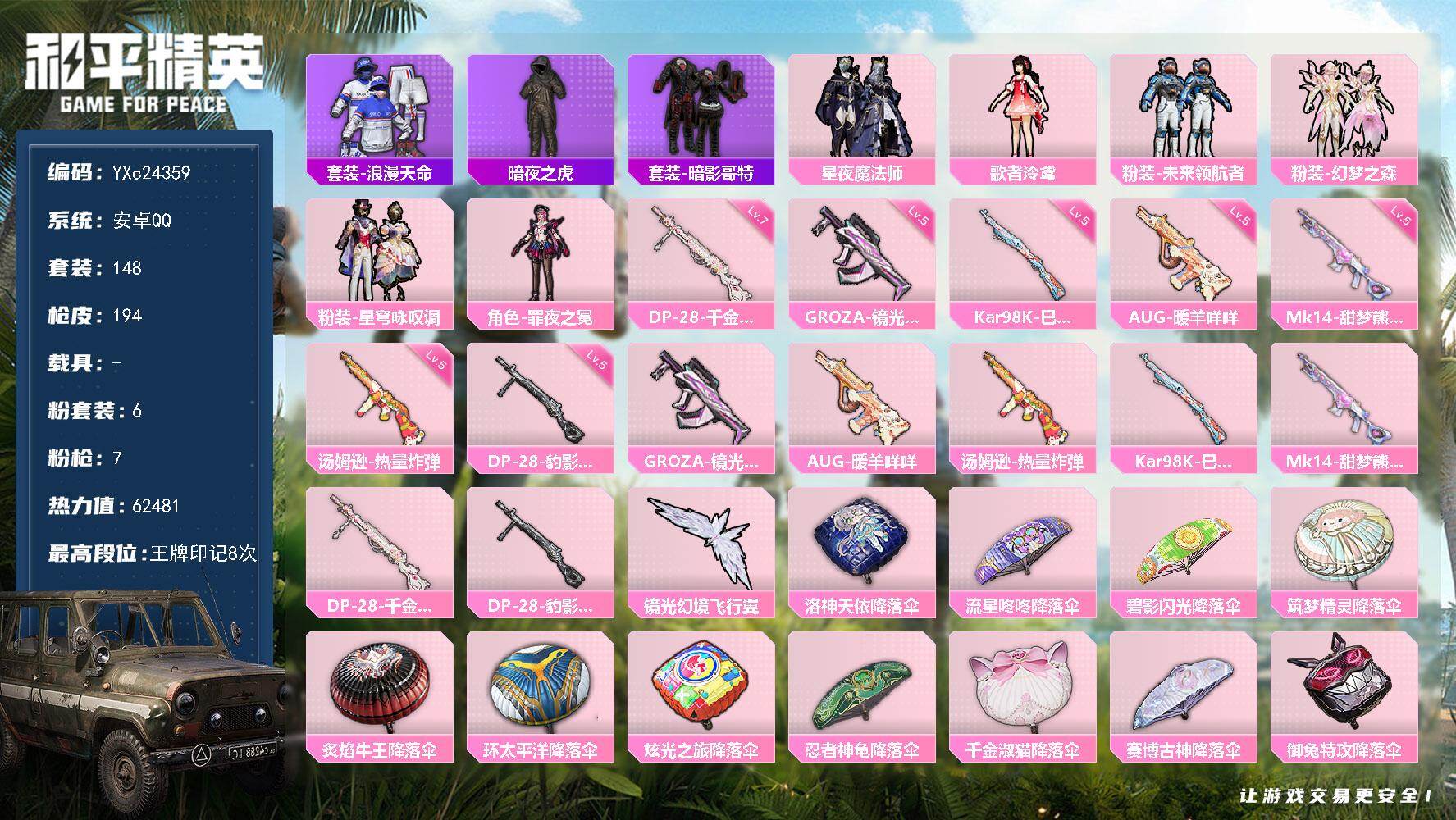 游戏区服:和平精英 / 安卓系统 / QQ账号