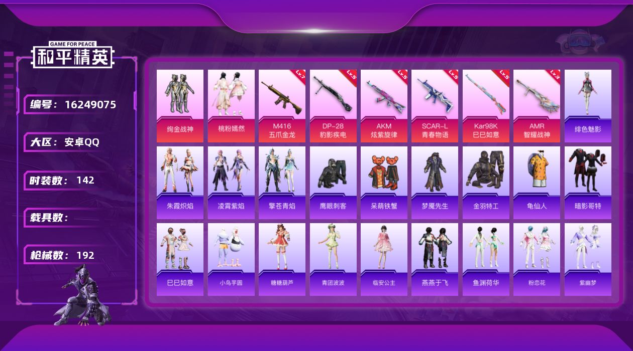 【401106】【可二次】【安卓QQ】AKM-炫紫旋律 M416-五爪金龙 SCAR-L-青春物语