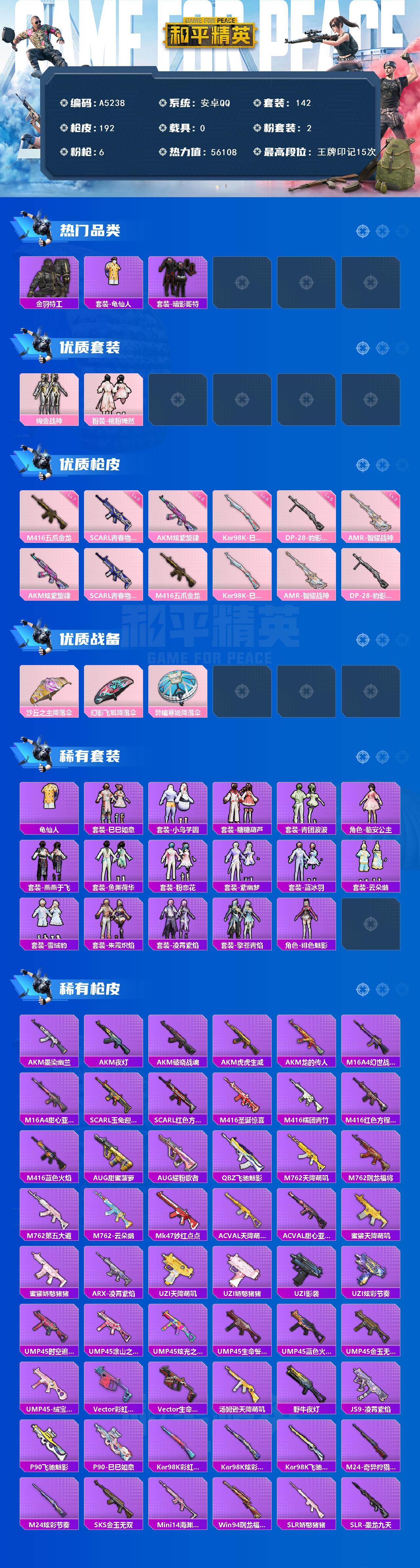 游戏区服:和平精英 / 安卓系统 / QQ账号