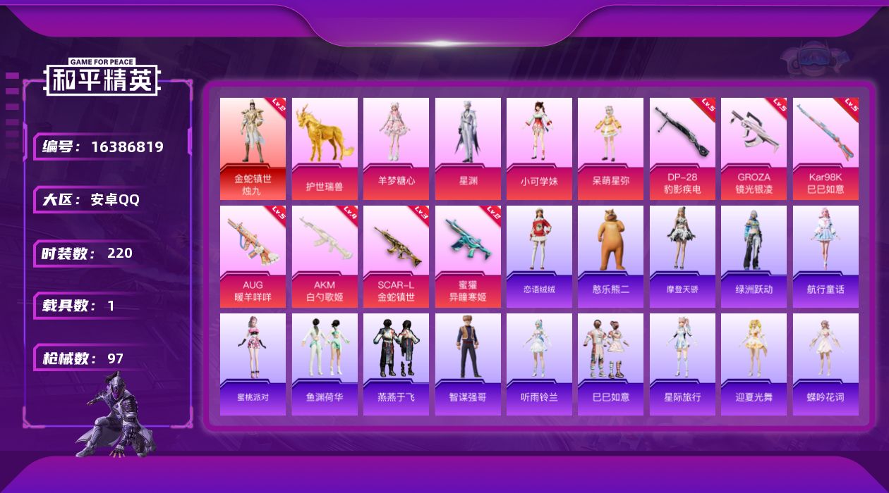 【420551】【可二次】【安卓QQ】AKM-白勺歌姬 M416-黄金龙骨 金蛇镇世-烛九