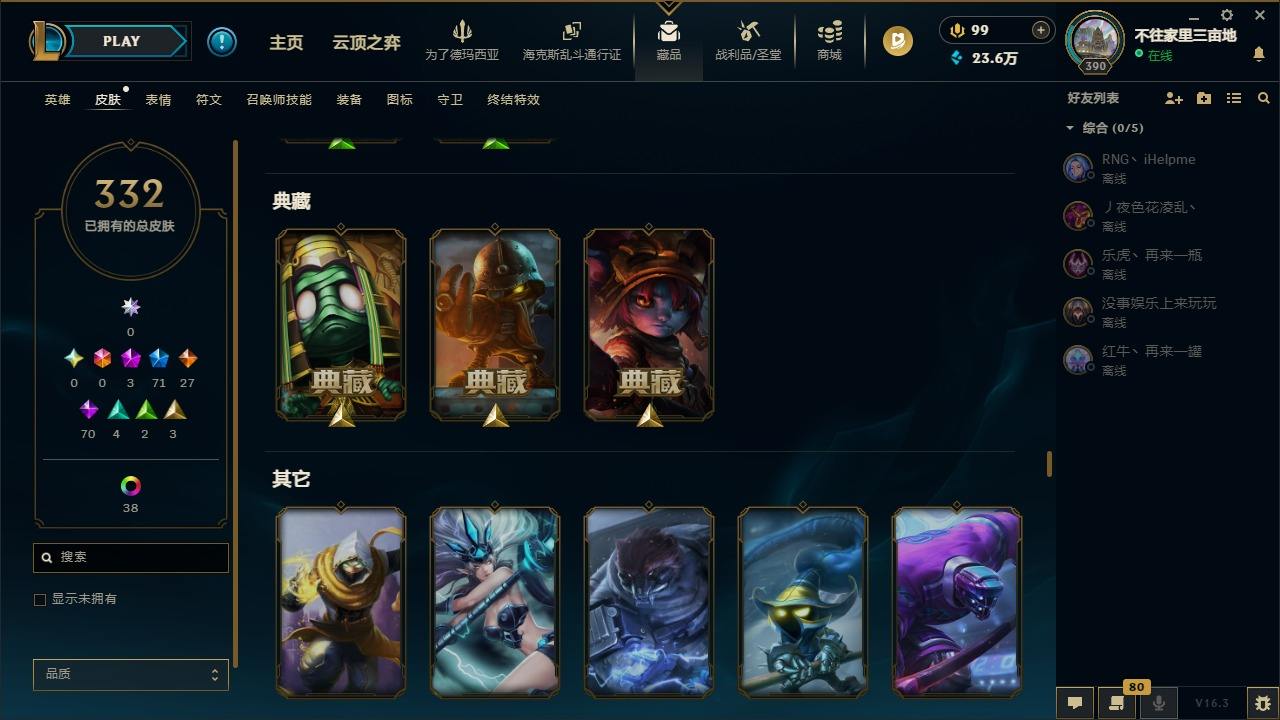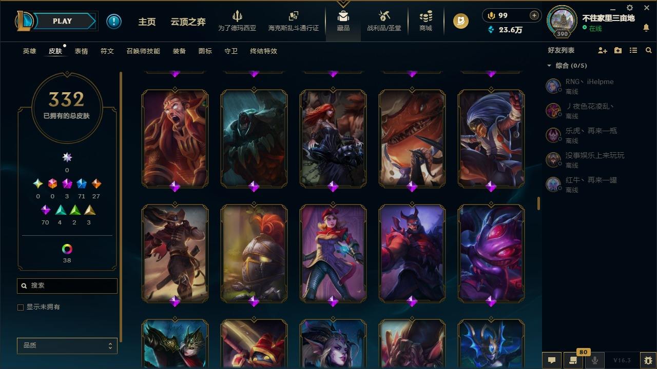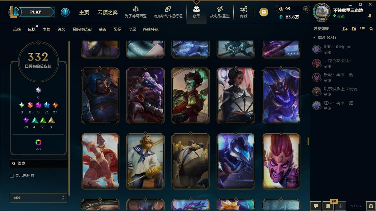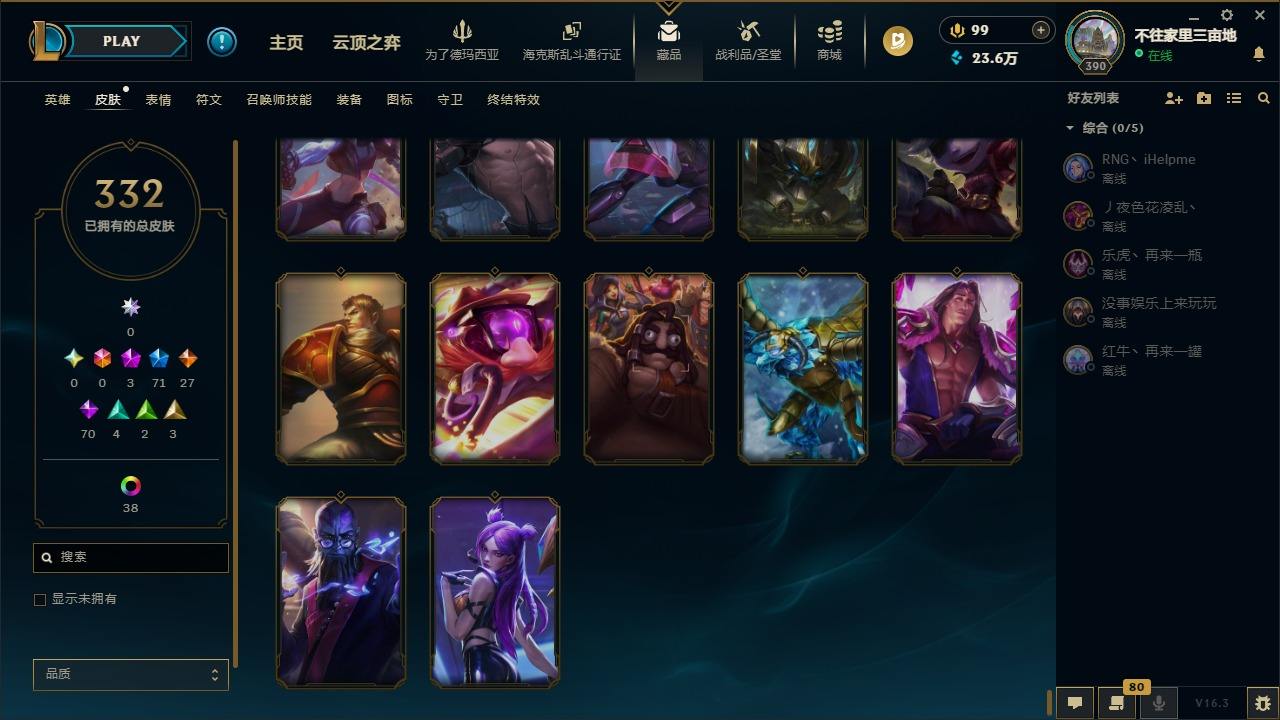 【447376】[16587376]3神话 71限定 27传说 70史诗 332皮肤 60炫彩 171英雄 可二次 可修改实名 【限定】斩星魔剑 易,舞会公主 安妮【情人节限定】甜心宝贝 安妮,甜心之翎 洛【赛季限定皮】胜利凤凰 艾尼维亚,胜利女神-菲奥娜,胜利之运 崔斯特,胜利女神 娑娜,胜利巨口 克格莫,胜利之王 泰达米尔【冠军限定系列】S1FNC 酒桶,S2 暗杀星 蒙多,S2 暗杀星 努