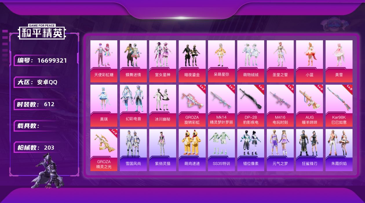 游戏区服:和平精英 / 安卓系统 / QQ账号