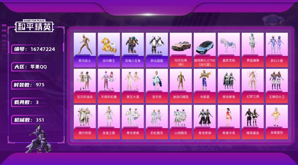 【467202】【不可二次】【苹果QQ】龟仙人 大橘为重 AKM-星际浪客 王牌四分卫 漫步者 韶华初心 豚鼠丹丹 庄周梦蝶飞行器 M416-心之恋语 深海小丑鱼 山涧鹿灵 AKM-奇异狩猎者 SCAR-L-梦幻火箭 M762-瑞龙福将 潮萌小黄鸭 黑色刀锋 海洋之心 安第斯皇冠 银龙傲海 白月香洋装 星夜魔法师飞行翼 路特斯EL蓝色 木乃伊 粉甜马卡龙 迪迦奥特曼 SPAS-12-音爆索尼克