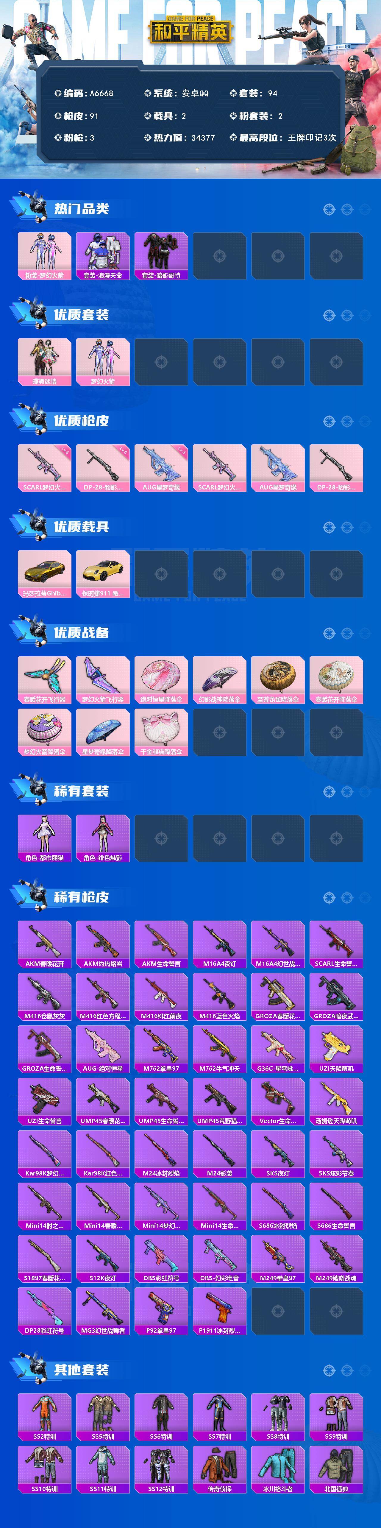 游戏区服:和平精英 / 安卓系统 / QQ账号