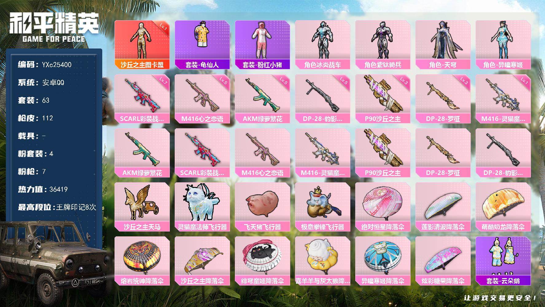 【471516】【不可二次】【安卓QQ】龟仙人 沙丘之主-图卡盟 AKM-绿萝繁花 SCAR-L-彩装战姬 P90-沙丘之主 M416-心之恋语 粉红小猪