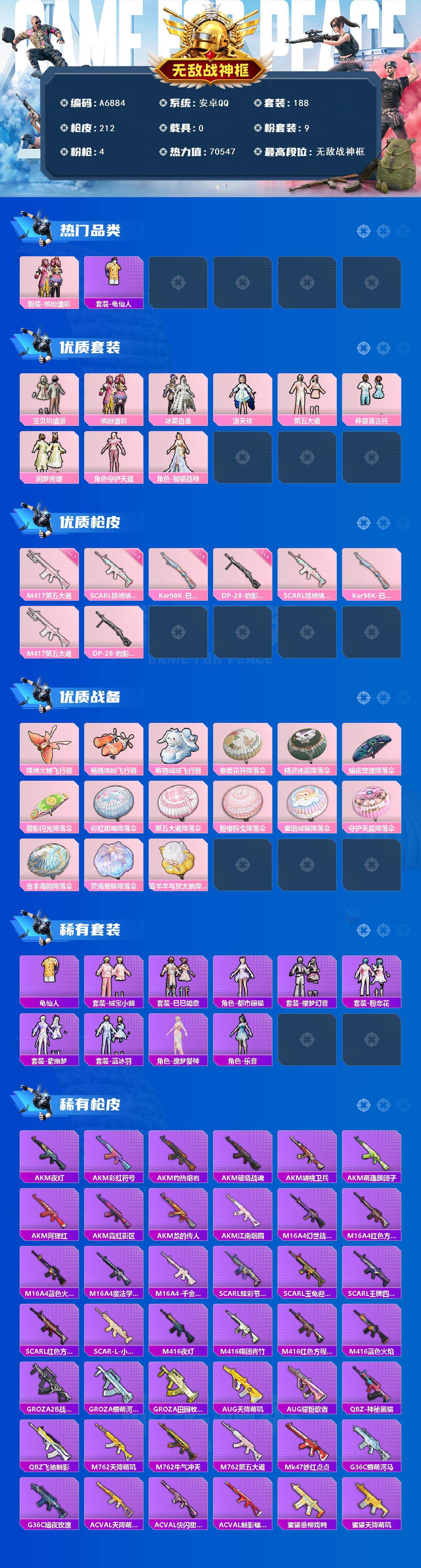 游戏区服:和平精英 / 安卓系统 / QQ账号