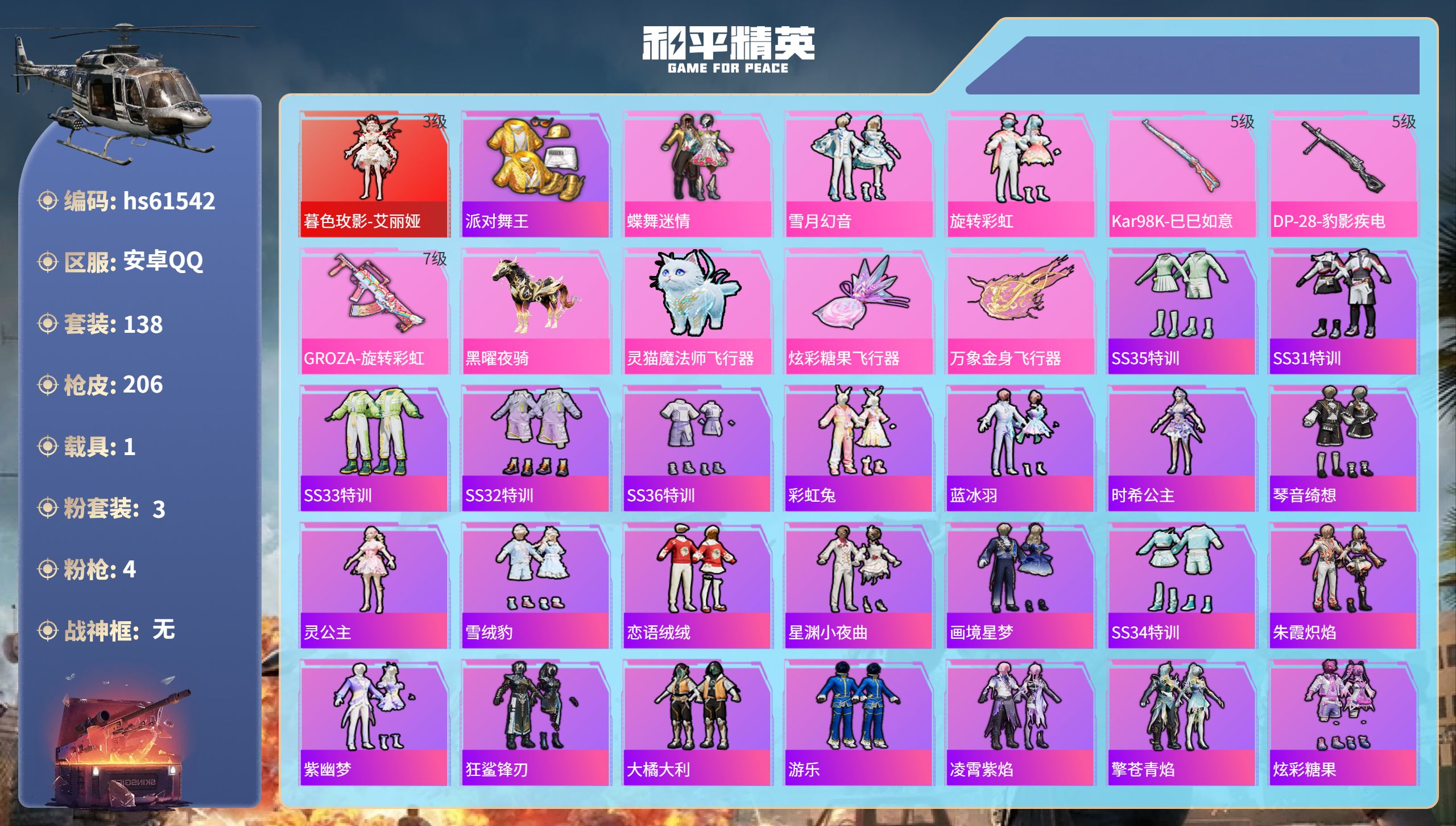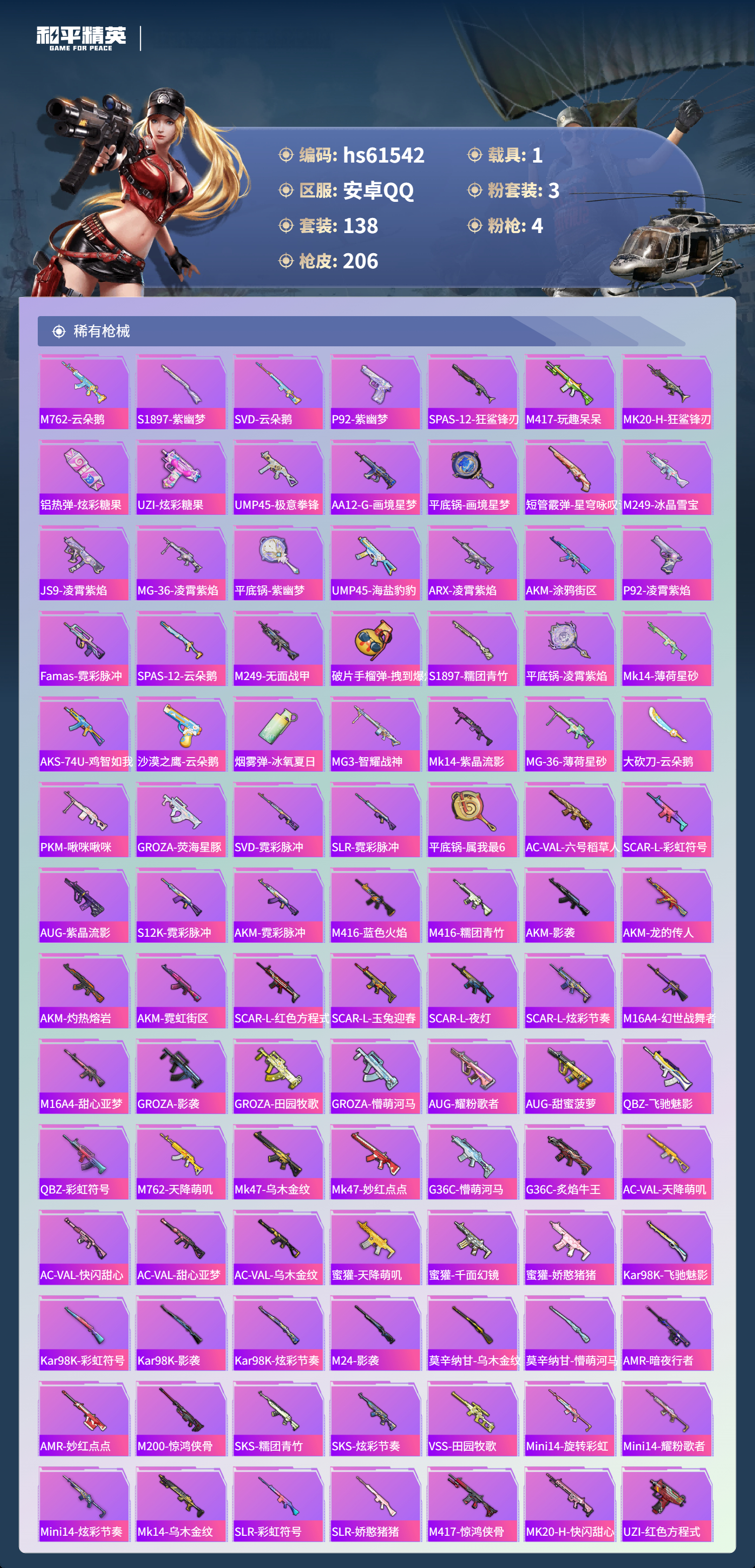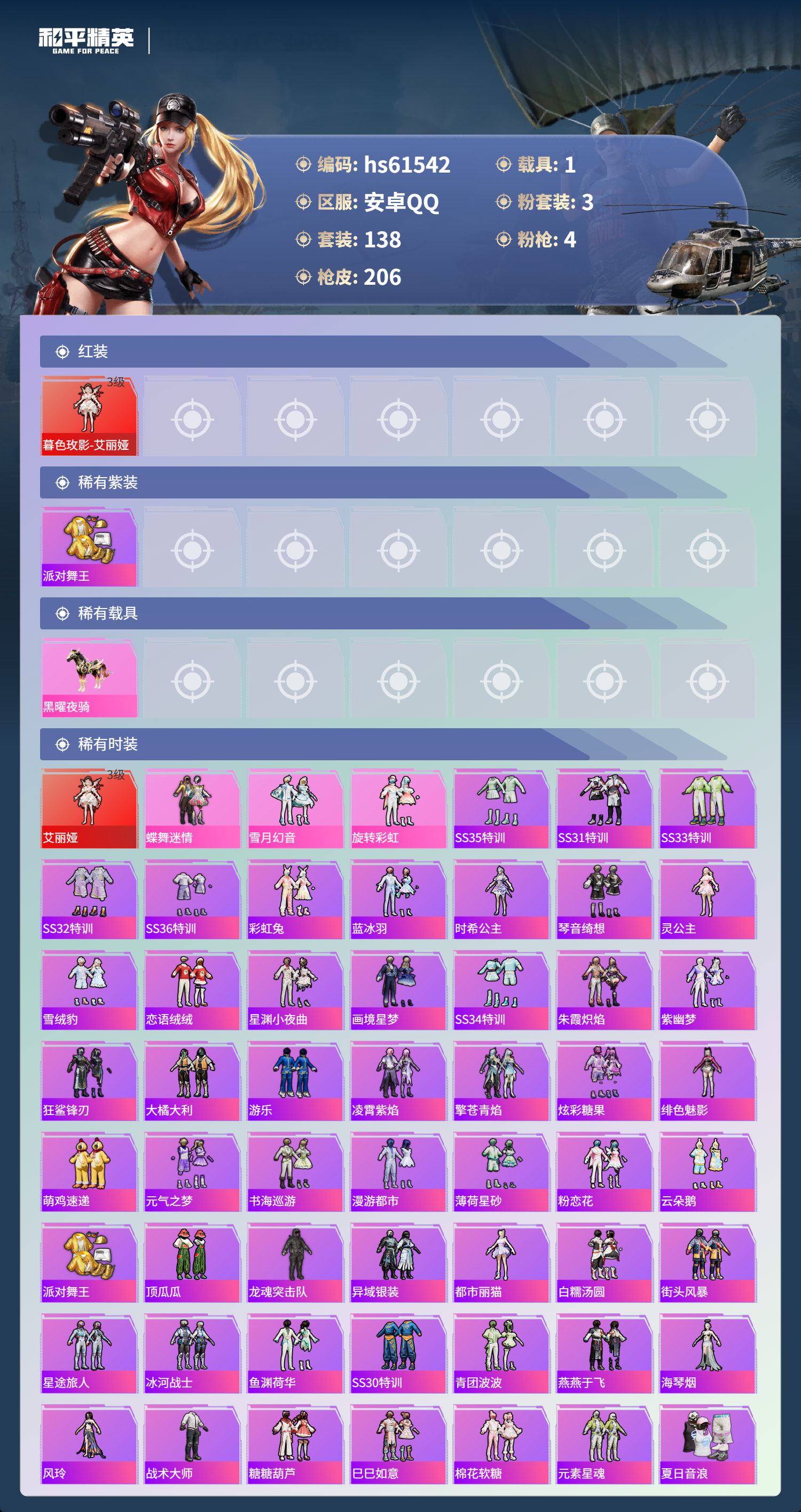 游戏区服:和平精英 / 安卓系统 / QQ账号