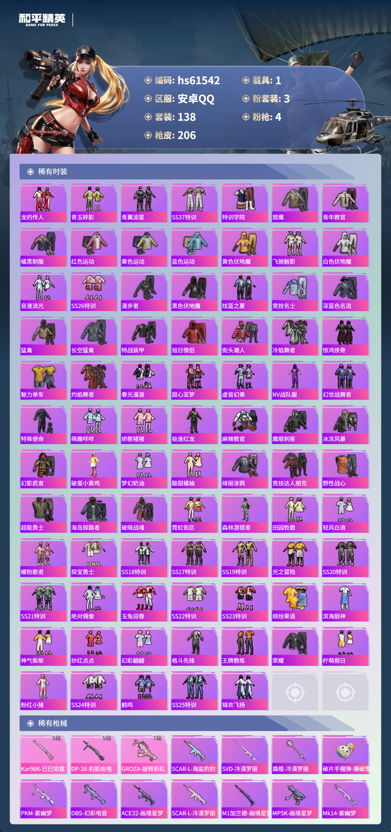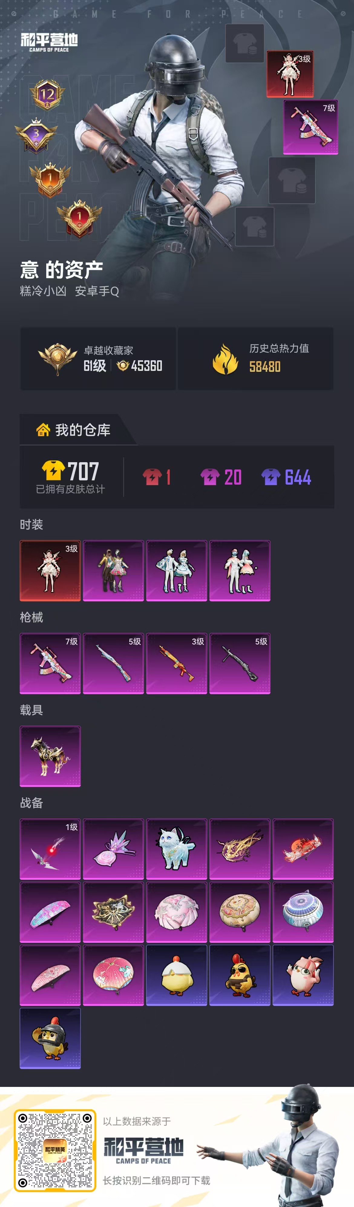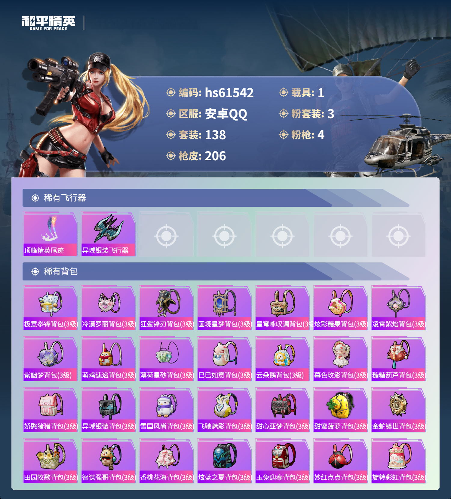 游戏区服:和平精英 / 安卓系统 / QQ账号