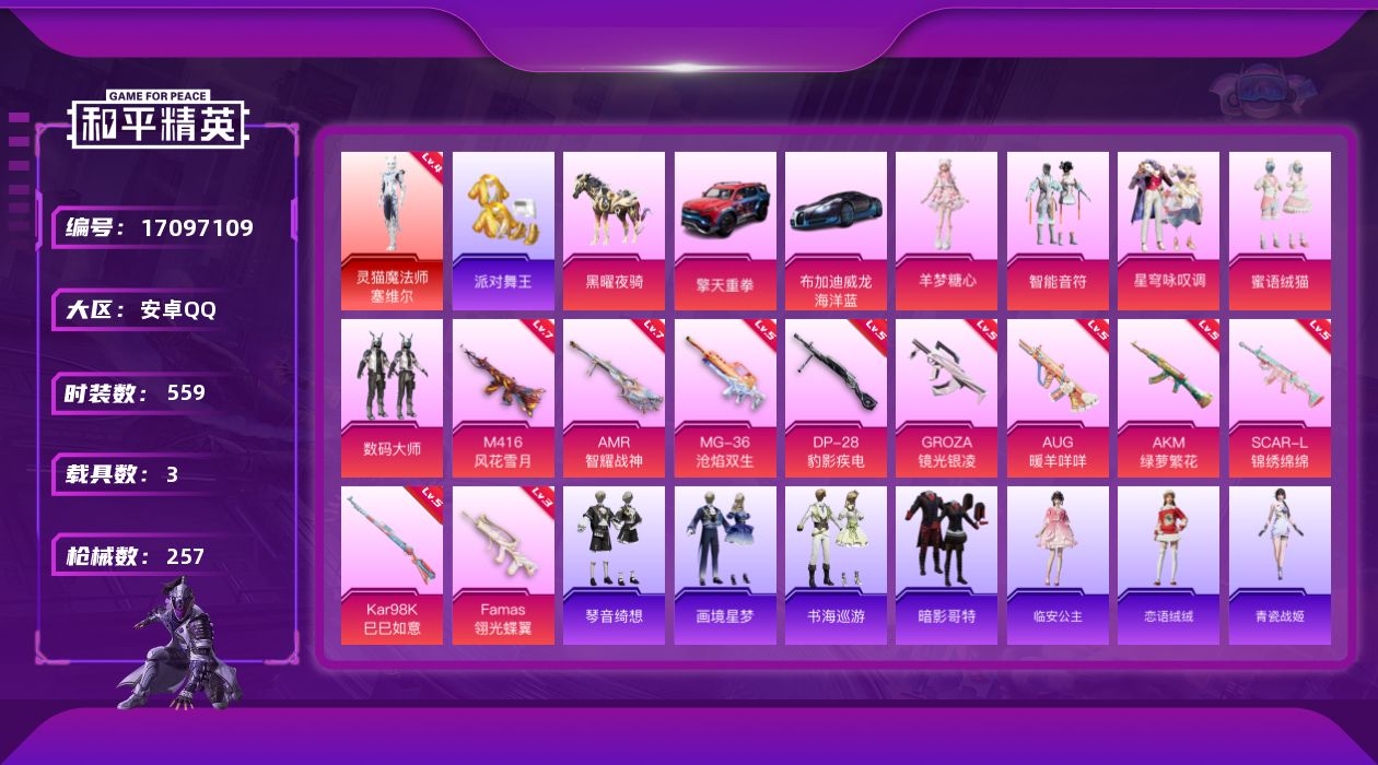 【479982】【不可二次】【安卓QQ】龟仙人 AKM-绿萝繁花 齐天大圣飞行器 SCAR-L-锦绣绵绵 M416-风花雪月 布加迪威龙(海洋蓝) AKM-缤纷海域 浪漫假日 数码大师 灵猫魔法师-塞维尔 智能音符 派对舞王 暗影哥特