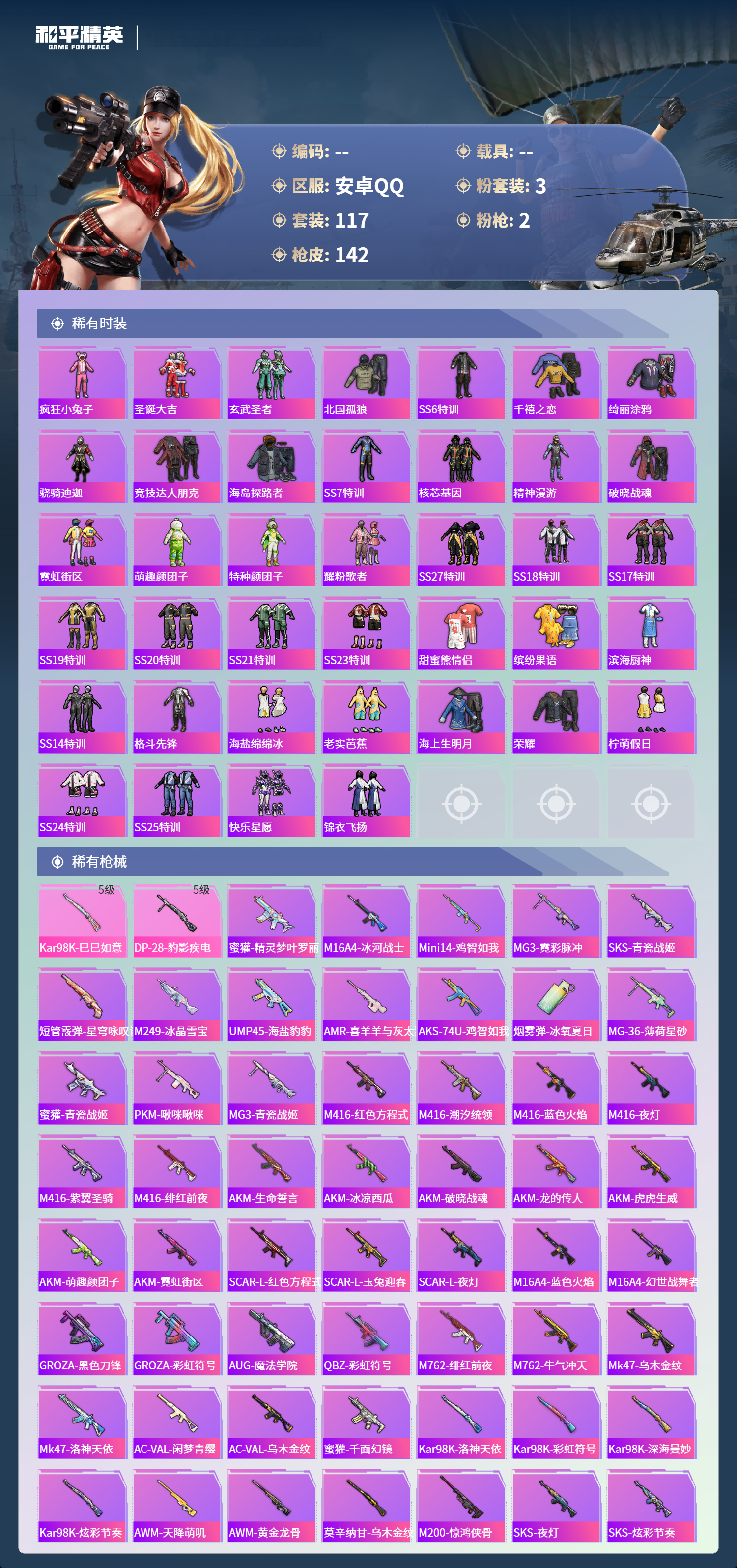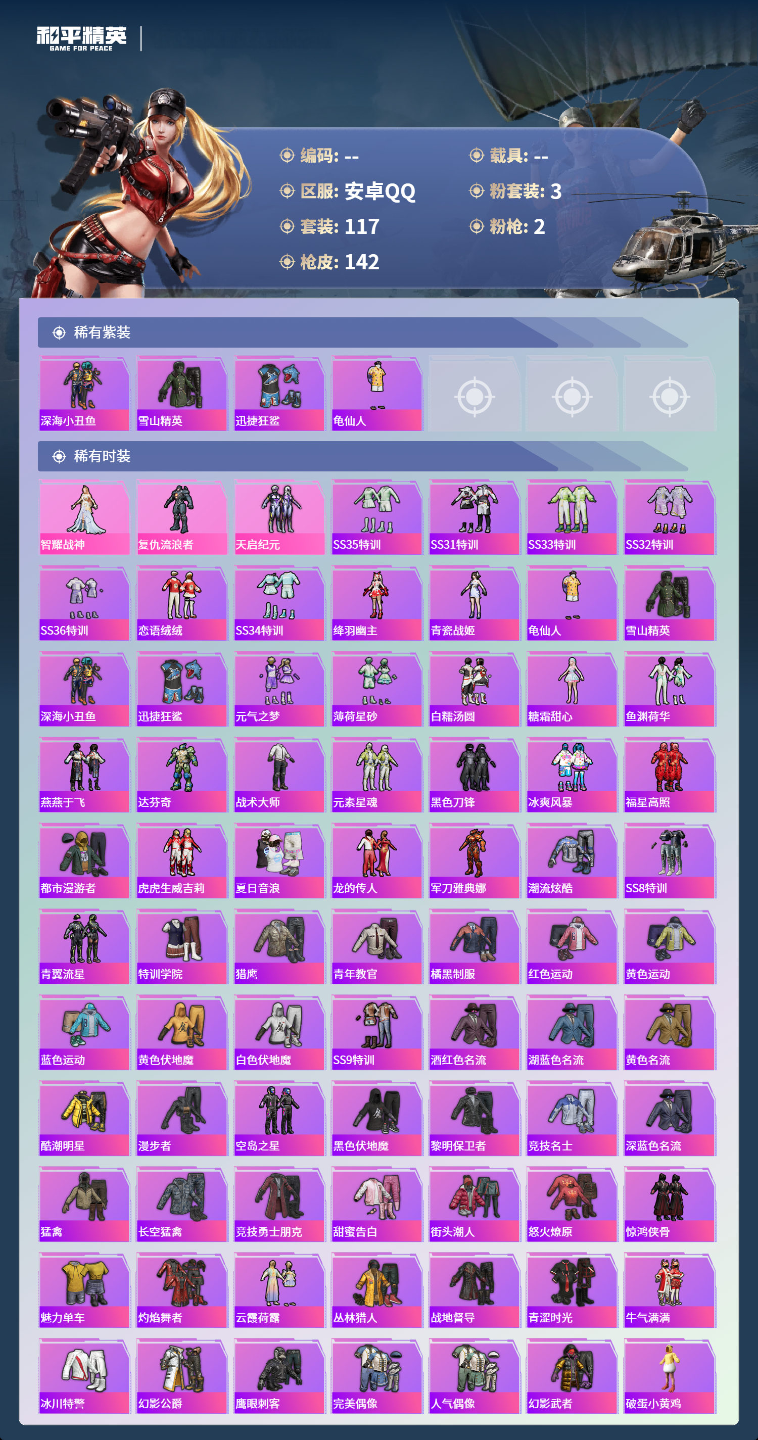 游戏区服:和平精英 / 安卓系统 / QQ账号