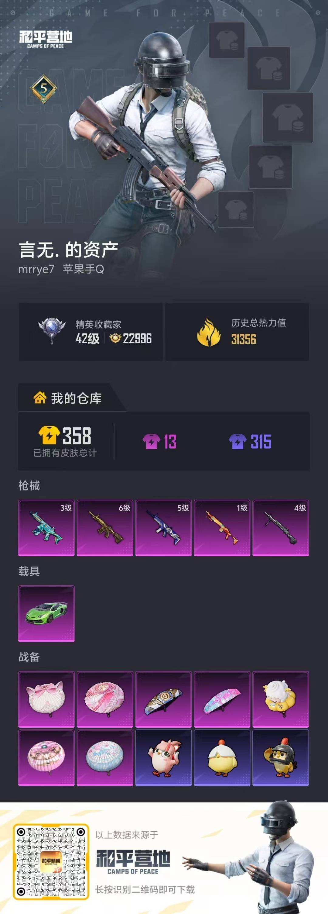 游戏区服:和平精英 / 苹果系统 / QQ帐号