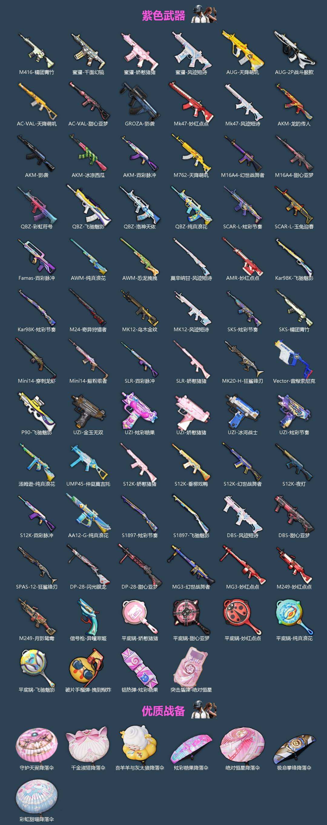 【480863】【可二次】【苹果QQ】龟仙人 兰博SVJ绿色 M416-五爪金龙 守护天翼降落伞 飞狐塔尔斯 浪漫天命 SCAR-L-青春物语 彩虹甜喵降落伞