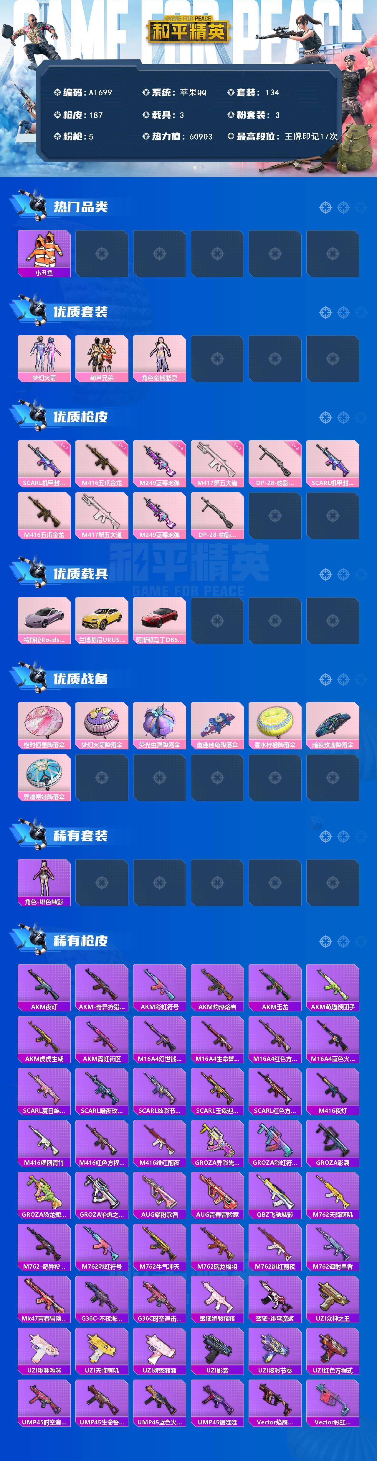 游戏区服:和平精英 / 苹果系统 / QQ帐号