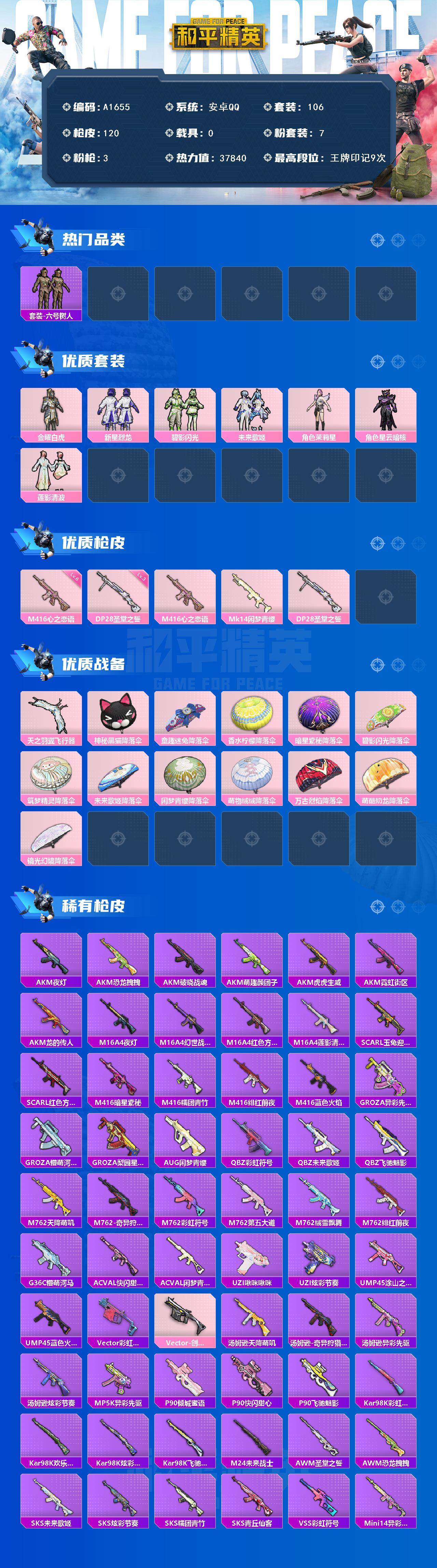 游戏区服:和平精英 / 安卓系统 / QQ账号