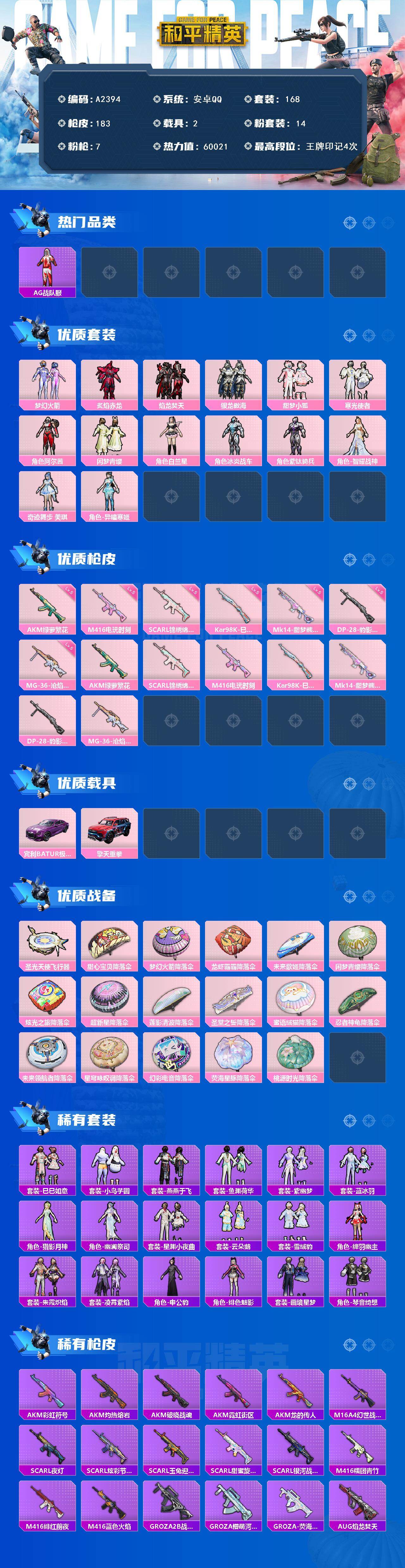 游戏区服:和平精英 / 安卓系统 / QQ账号