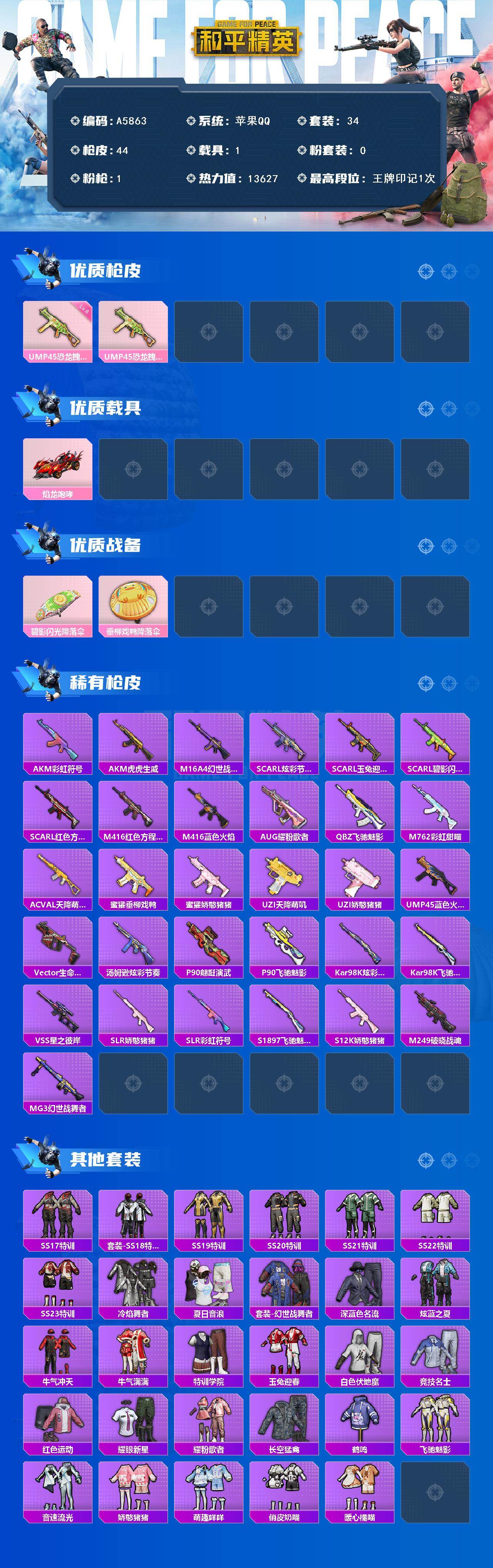 游戏区服:和平精英 / 苹果系统 / QQ帐号
