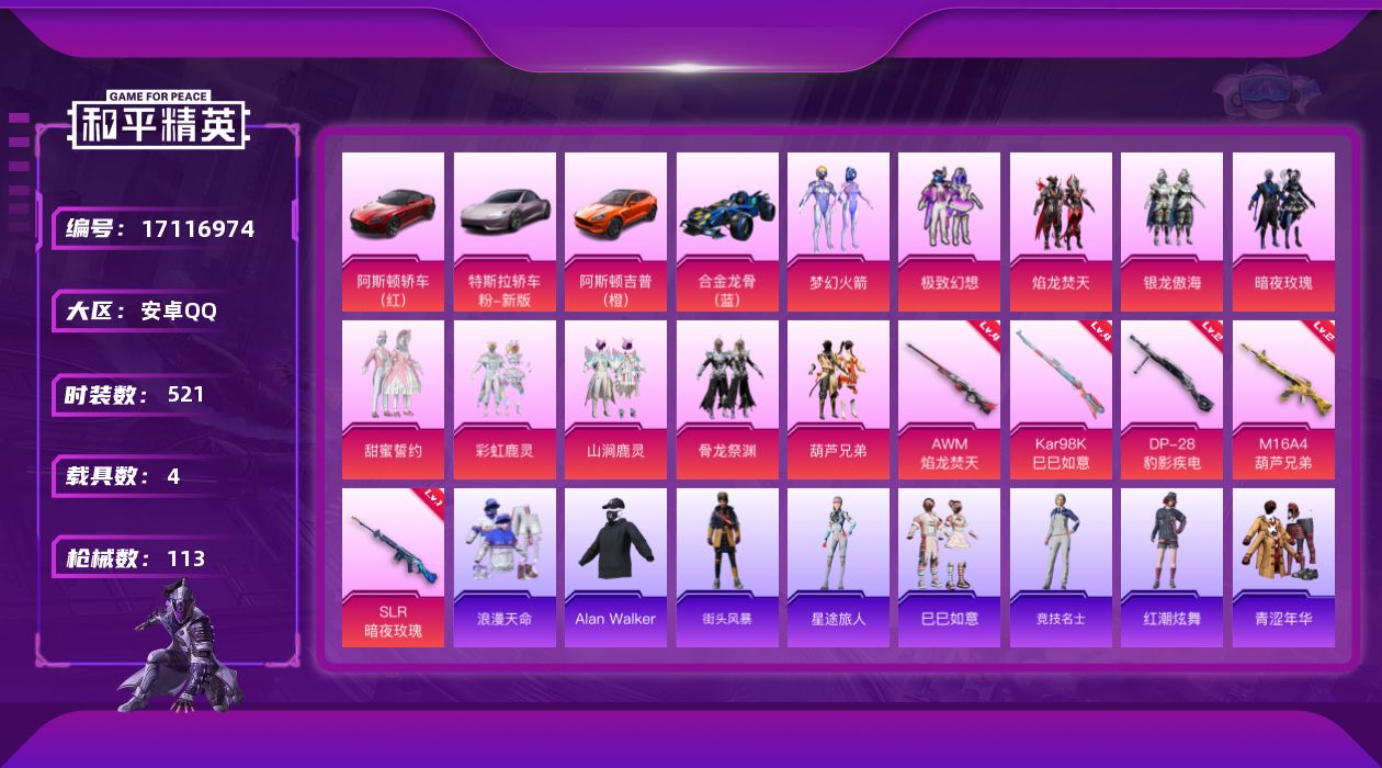 【482973】【不可二次】【安卓QQ】合金龙骨蓝色 灵绣 大橘为重 粉甜马卡龙 AWM-焰龙焚天 汤姆逊-林间仙鹿 葫芦兄弟 罗小黑 Mini14-林间仙鹿 空客蔚蓝之翼 M416-仓鼠灰灰 GROZA-林间仙鹿 浪漫波比 山涧鹿灵 瑞龙福将 激萌小黄鸭 浪漫天命 骨龙祭渊 纯白誓言 团圆交子 焰龙焚天 暗夜契约 M762-瑞龙福将 潮萌小黄鸭 阿斯顿马丁X橙色 极致幻想 特斯拉R沁心粉 彩虹